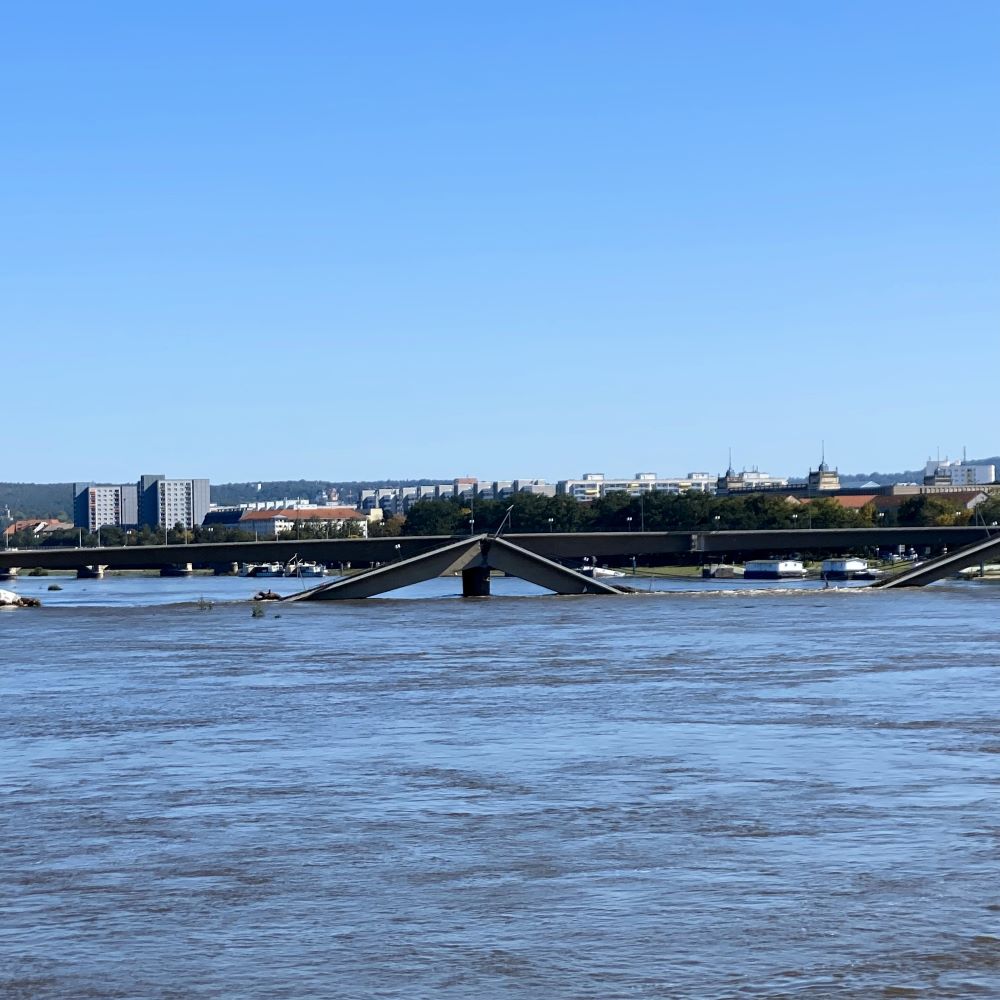 Letztlich war ich aber dennoch zwei Stunden vor Anpfiff in Elbflorenz und nach so einer langen Bahnreise wollte ich mir gern die Füße vertreten. Ein kleiner Altstadtspaziergang bietet sich in Dresden immer an und obendrein gibt es da einen neuen Touristenmagneten. Denn am 11. September 2024 stürzte mit der 1947 erbauten Carolabrücke eine der wichtigsten Dresdner Elbbrücken teilweise ein. Zum Glück kam aufgrund der frühen Einsturzzeit (2:58 Uhr) kein Mensch zu Schaden und ein terroristischer Hintergrund wurde zunächst auch ausgeschlossen (Experten sprachen von Korrosion als wahrscheinlicher Einsturzsache).