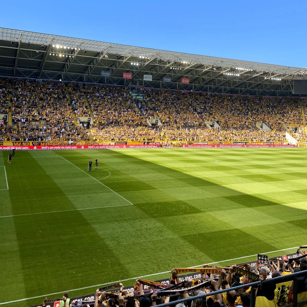 Die steigende Elbe aus dem Bekennerschreiben ist nebenbei noch ein gutes Stichwort. Am Vorwochenende war es in u. a. Österreich, Tschechien und Polen zu sintflutartigen Regenfällen gekommen. Dieses Extremwetterereignis hatte die Pegel diverser Flüsse in Mitteleuropa stark steigen lassen und zu Überschwemmungen mit mehreren Todesopfern und Schäden in Milliardenhöhe geführt. Da im betroffenen Gebiet auch einige Flüsse in die Elbe entwässern, stieg deren Pegel ebenfalls bedenklich an. So wurde in Dresden unter der Woche die 6-Meter-Marke geknackt (Normalwert sind 1,42 m) und ich sah das heutige Spiel schon buchstäblich ins Wasser fallen. Allerdings hatte Dresden Glück und seit Donnerstag sinkt der Pegel wieder langsam (am heutigen Vormittag waren es „nur“ noch 4,82 m).