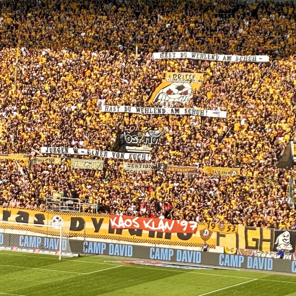 Mit vollem Magen erlebte ich nun endlich volle Kapelle im Gästeblock. Die Fans der Kogge legten richtig gut los und plötzlich wurden meine Ohren im restlos ausverkauften Stadion von zwei Seiten betäubt. Außerdem hatte die Hansa-Szene zwei provokante Botschaften für ihr Gegenüber auf Tapete gepinselt. Einerseits streuten sie das Gerücht, dass der K-Block seine Motive mittlerweile per KI erstellt und andererseits griffen sie die Anbahnung einer neuen Freundschaft von Dynamo mit einer polnischen Szene auf. Nein, es ist nicht wieder GieKSa… Diesmal soll es für Freundschaftsbesuche noch weiter nach Osten gehen.