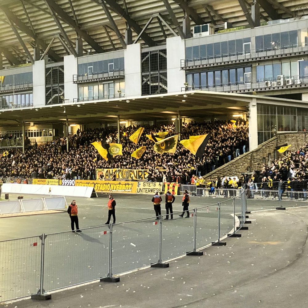 Nachdem die jungen Borussen das Tor ausgiebig vor dem leuchtenden Fanblock gefeiert hatten, war aus Sicht der sächsischen Schlachtenbummler natürlich eine Antwort des Tabellenführers wünschenswert. Die Gastmannschaft wirkte anschließend auch tatsächlich irgendwie noch bemühter, aber spätestens im Strafraum klärte die BVB-Defensive weiterhin alles. Erst bei einem Freistoß in der 66. Minute gelang Daferner per Kopf der auf den Traversen der Gegengerade viel umjubelte Ausgleich.
