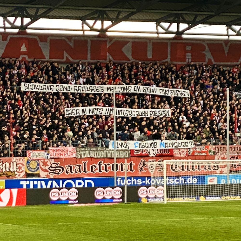 Die Heimkurve hatte übrigens ebenso Tapetenrollen beschrieben und warf der verfeindeten Szene aus Jena u. a. vor sich vergangene Nacht in Naumburg bei einer möglicherweise vorab verabredeten Auseinandersetzung nicht gestellt zu haben. Außerdem wurde kolportiert, dass wohl ausgerechnet FCC-Szeneleute aus Naumburg in der Vergangenheit mit Hitlergrüßen aufgefallen sind und die Frage in den Raum geworfen, wie dieses Verhalten mit dem antirassistischen Grundkonsens der Südkurve in Einklang zu bringen sei.