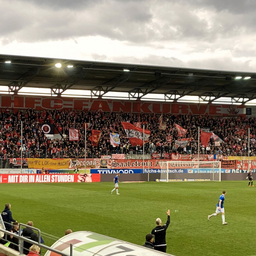 Weil die Jenaer Bemühungen um einen neuerlichen Ausgleich vergeblich blieben, feierten am Ende außerdem nicht nur die vermeintlichen Gewalttäter sich selbst, sondern alle Hallenser eine siegreiche Heimmannschaft. Nachdem der FC Carl Zeiss drei Wochen zuvor die Tabellenführung im direkten Duell an Lok Leipzig abgeben musste (dieses Medium berichtete) und anschließend auch beim Abstiegskandidaten FC Eilenburg sieglos blieb (dieses Medium berichtete schon wieder), ließ man heute also die nächsten wichtigen Punkte liegen (nur eines der letzten vier Spiele konnte gewonnen werden).