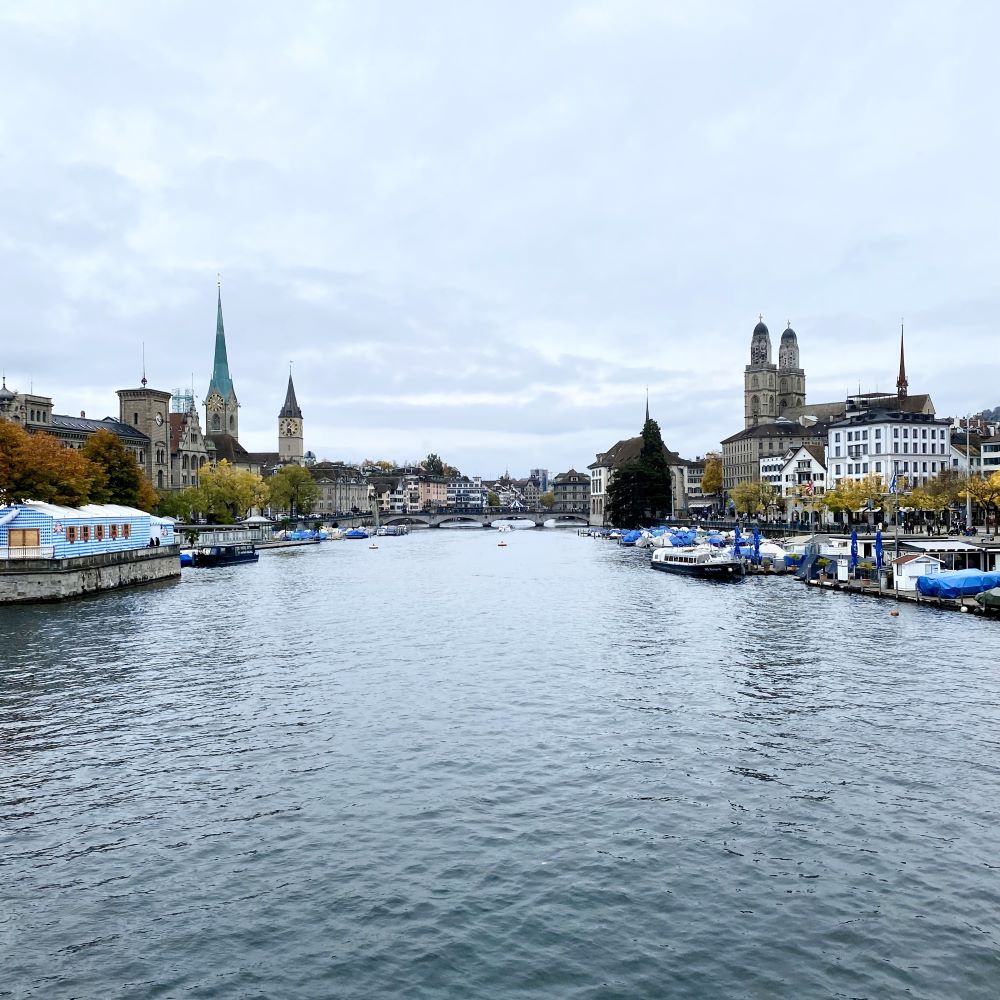 Außerdem wollten wir dort eh nicht alt werden. Denn so zwei, drei Sehenswürdigkeiten musste ich meinem Mitreisenden bei seinem Erstbesuch in Zürich schon zeigen. Wir drehten also eine Bierlänge später ’ne kleine Runde rechts und links der Limmat mit u. a. dem Grossmünster, dem Fraumünster, dem Rathaus und den Zunfthäusern am Limmatquai. Natürlich ließ ich dabei auch mein bescheidenes Wissen über die Stadt- und Wirtschaftsgeschichte einfließen, aber eine Niederschrift meines Wortschwalls erspare ich dem Leser an dieser Stelle. Es steht schließlich schon alles im Bericht Zürich 02/2022.