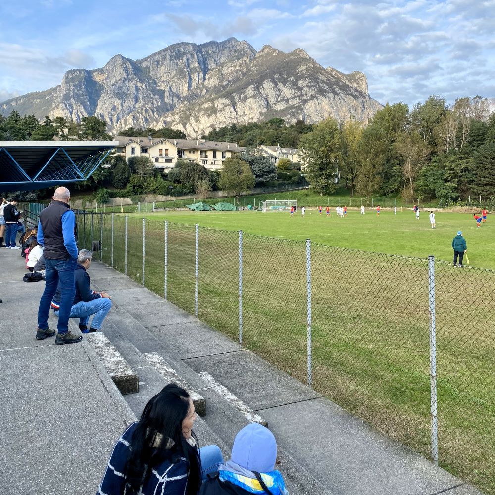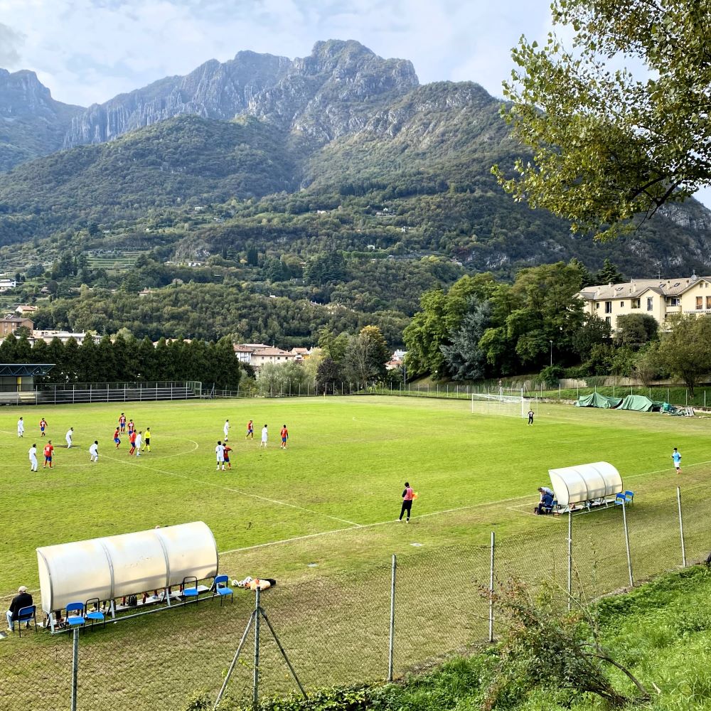 50 % der Reisegruppe ärgerten sich richtig derbe darüber und die andere Hälfte hätte durchaus auch Bock auf das Spiel gehabt. Aber zum Glück lag unser Apartment nicht nur direkt am Seeufer in Leccos Nachbargemeinde Malgrate, sondern auch ganz in der Nähe eines kleinen Stadions. Die in Italien für Fußballfreunde unerlässliche App Tuttocampo offenbarte nun als Trostpreis ein Amateurspiel auf jener Anlage um 15:30 Uhr.