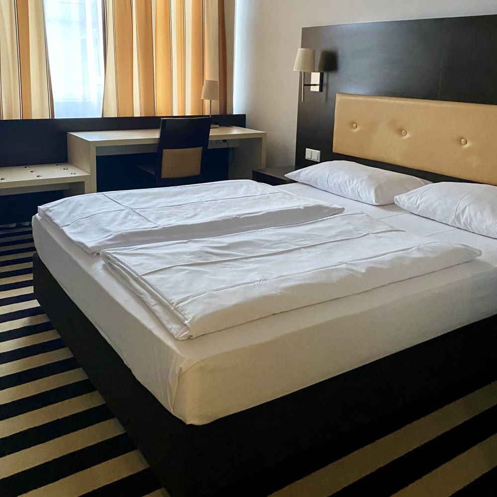 Am nächsten Morgen stürzte ich mich um 8:30 Uhr auf das im Übernachtungspreis inbegriffene Frühstücksbuffet des Hotels. Die Auswahl war überraschend groß und qualitativ unterbot es zumindest nicht den Erwartungshorizont. Unerwartet war hingegen der eiskalte Wodka im Getränkebereich. Wer sich hier gleich zum Frühstück einen reinschrauben will oder muss, wäre also positiv überrascht gewesen.