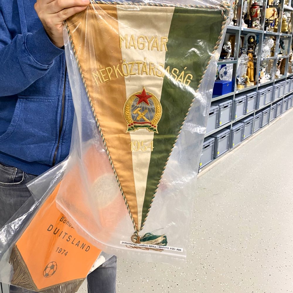 **Der archivierte Wimpel von 1954 ist höchstwahrscheinlich vom WM-Endspiel. Aber es kann nicht zu 100 % ausgeschlossen werden, dass es vielleicht doch der Wimpel aus dem Vorrundenspiel zwischen Deutschland und Ungarn ist.