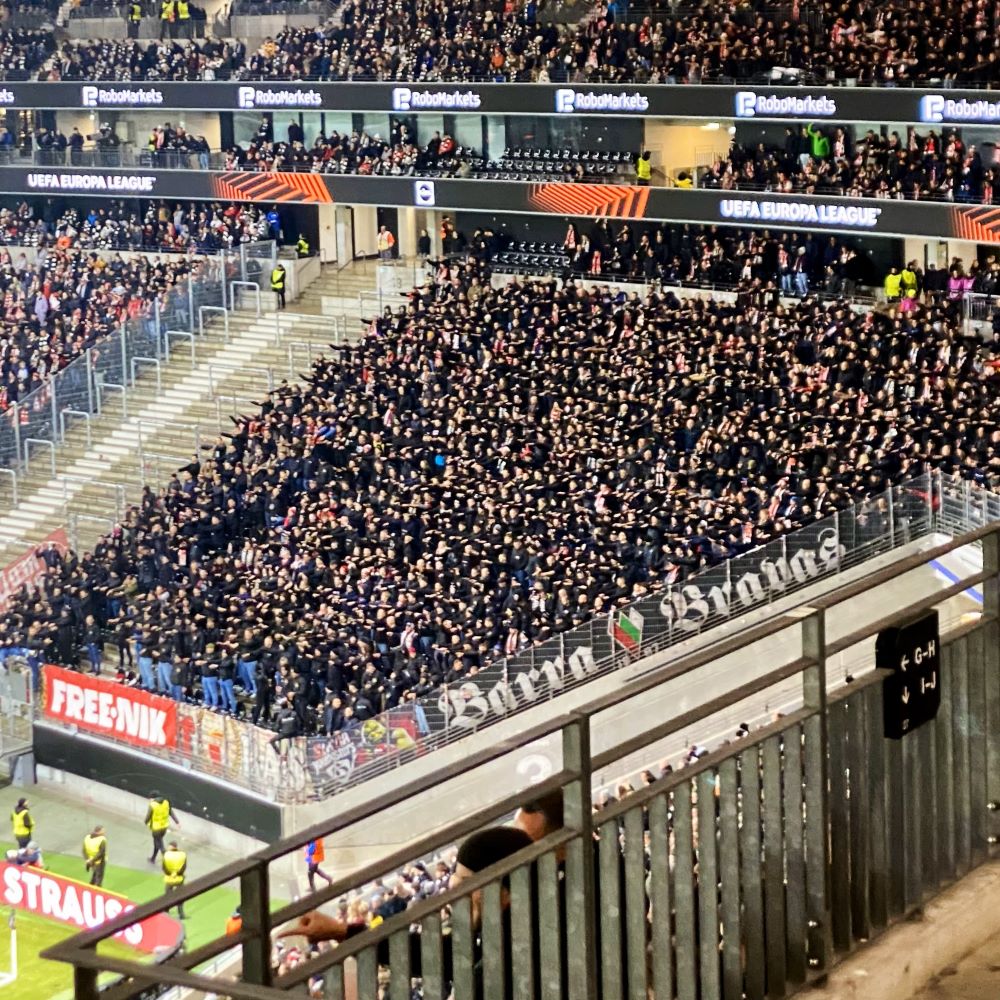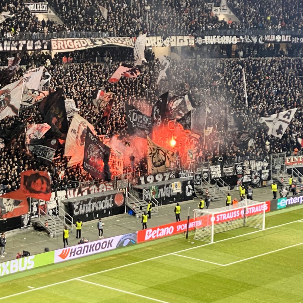 Obendrein kaufte ihre Mannschaft den favorisierten Frankfurtern lange den Schneid ab. Slavia kam sehr gut in die Partie, störte mit konsequentem Pressing den Spielaufbau der am 8. März 1899 gegründeten Sportgemeinde Eintracht und hielt bis zur Pause verdient ein 0:0. Erst nach dem Seitenwechsel sollte einmal mehr in dieser Saison ein gewisser Omar Marmoush den Unterschied machen. Dem Ägypter in Diensten der Eintracht gelang in der 53. Minute ein wunderschönes Freistoßtor zum 1:0, von dem sich die Nordwestkurve zu weiteren Freudenfeuern hinreißen ließ.