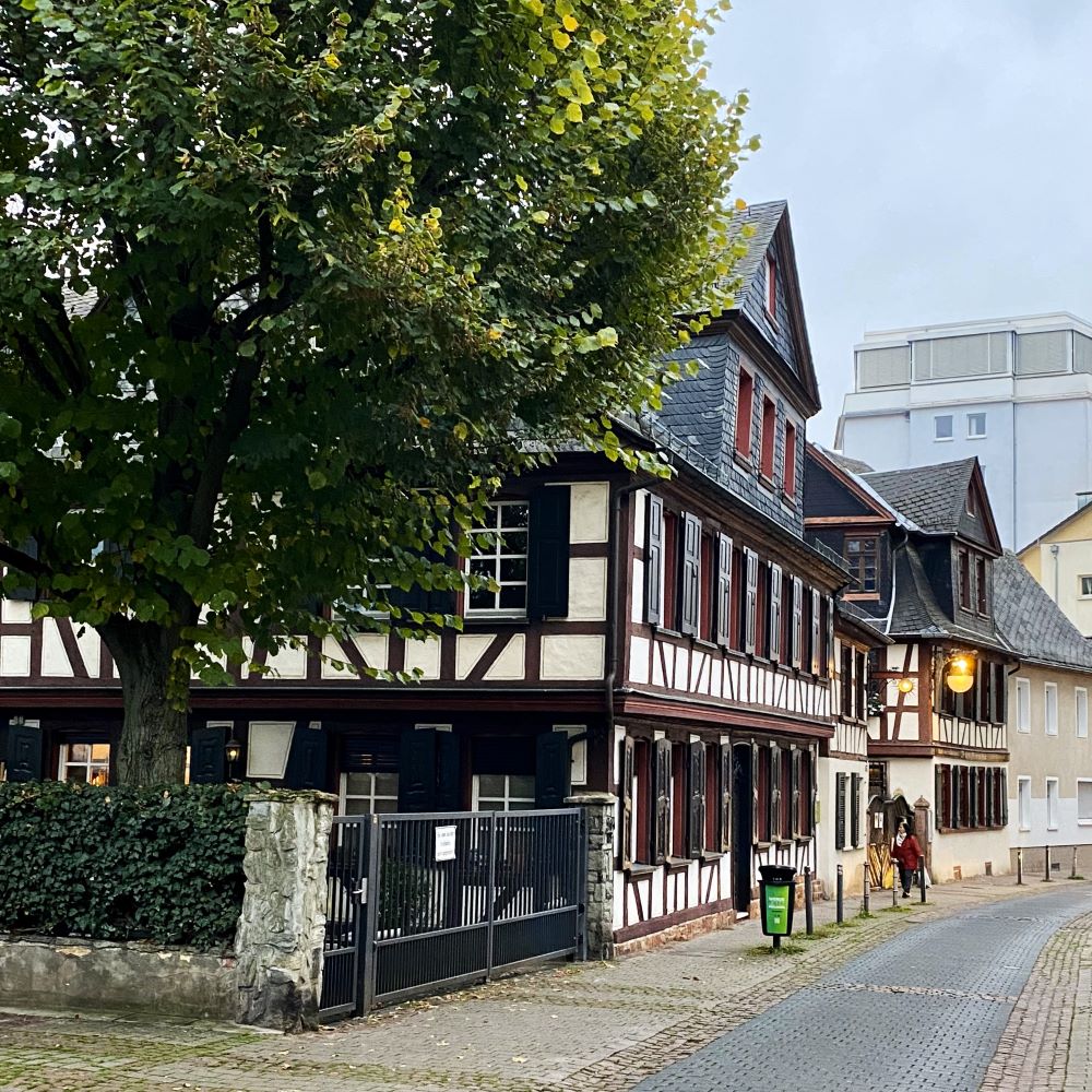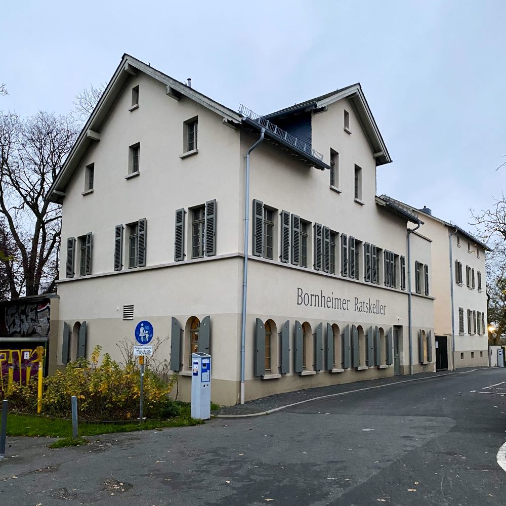 Ich stieg Bornheim-Mitte aus und spazierte noch ein wenig durch das 1877 von Frankfurt eingemeindete Bornheim. Dieser Stadtteil gefiel mit schöner Gründerzeitarchitektur und einigen traditionsreichen Apfelweinschenken. Die waren wiederum teils in alten Fachwerkhäusern zuhause und wirkten dementsprechend besonders urig. Da wäre ich kulinarisch bestimmt auch auf meine Kosten gekommen, aber heute sollte es erstmal der auf dem Bornheimer Hang thronende Ratskeller werden.