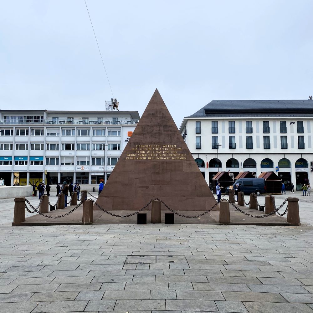 Nun kauften wir unsererseits Tickets im KSC-Zweitmarkt und schlenderten anschließend gemütlich durch Karlsruhes Innenstadt. Matteo zeigte mir gern ein paar Sehenswürdigkeiten an seinem aktuellen Arbeitsort, der erst im Jahre 1715 von Markgraf Karl III. Wilhelm von Baden-Durlach (* 1679; † 1738) gegründet wurde. Mit seiner fächerförmig angelegten Planstadt wollte der Markgraf damals der mittelalterlichen Enge der bisherigen Residenzstadt Durlach entfliehen und sich zugleich im übertragenen Wortsinn unsterblich machen.