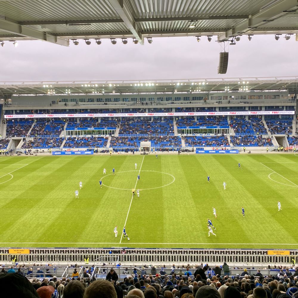 Karlsruhe hatte ich dagegen in den letzten zwei Jahren ein paar Mal gesehen (zuletzt drei Wochen zuvor in Hannover) und rechnete mir daher ebenfalls kaum Überraschungsmomente in Sachen Tifo aus. Mein Wunsch war deshalb ein möglichst packender Spielverlauf, der beide Fanlager aus dem business as usual reißen würde. Zumindest am Ende sollte es tatsächlich so kommen, doch erst einmal der Reihe nach…