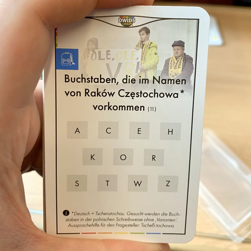 Ferner fungierte ich als neutraler Spielleiter bei unserer Einweihung des heiteren Ratespiels “DWIDSkids wissen das Vol. 2″. Das Spiel dauerte in der Konstellation tatsächlich über drei Stunden (ergo bis kurz vor Mannheim) und endete 16 zu 15 für Milano Pete. Am Ende fragt man sich bei so einer engen Kiste als unterlegener Bene natürlich schon, woran es gelegen hat. Ich glaube sein entscheidender Fehler war, dass er die Handtuchmafia Oberhausen noch immer auf der Gegengerade des Niederrheinstadions verortet hat. Aber wir wollen nicht zu viel spoilern…