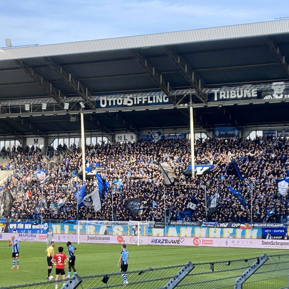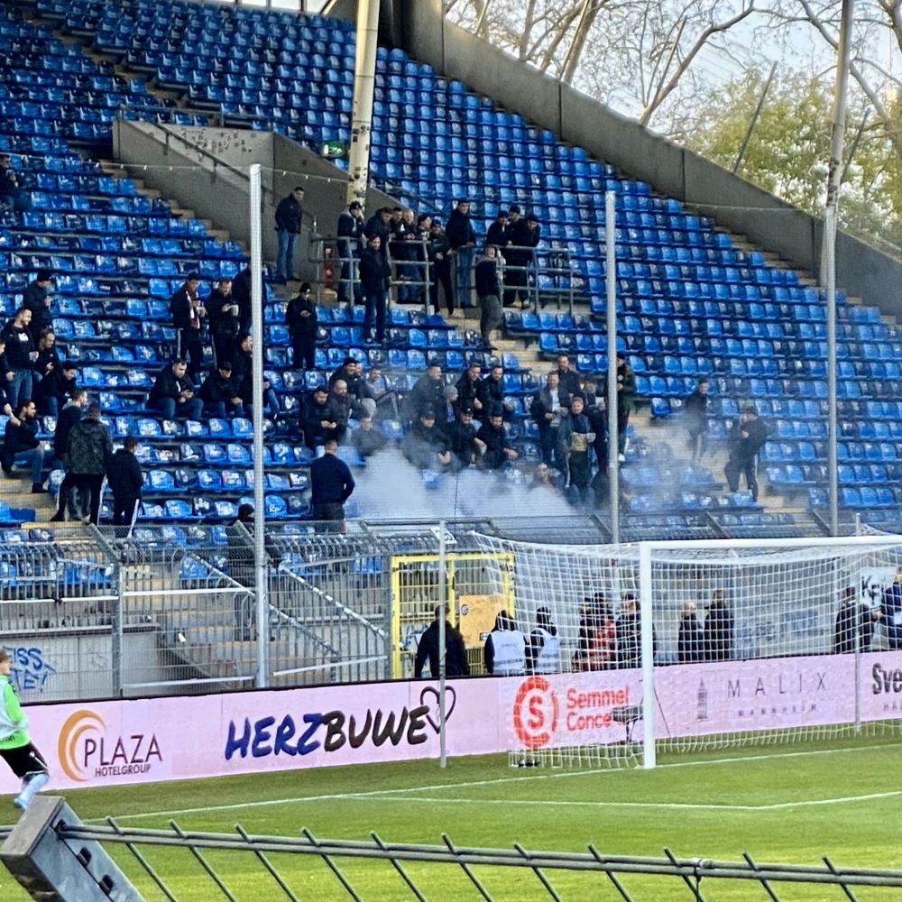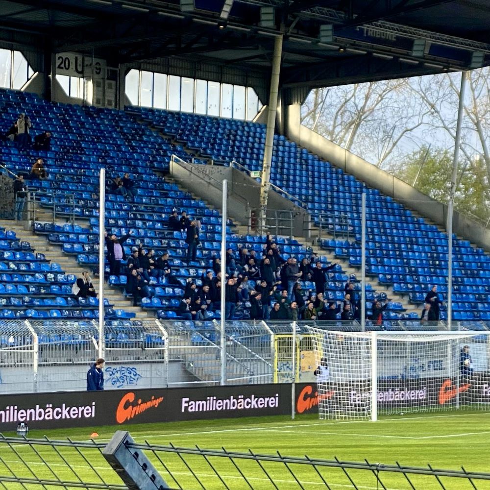 Gegen 96 II konnten wir von Ultras Mannheim & Co hingegen nicht mehr als Dienst nach Vorschrift erwarten. Aber ein paar sehr laute Momente hatten die Buwe und Mädels auf der Otto-Siffling-Tribüne heute trotzdem. Fand übrigens auch Matteo, der pünktlich zum Anpfiff aus Pforzheim eingetroffen war und aus einem Gästefantrio auf der pro Ticket 26 € teuren Walter-Pradt-Tribüne (Gegengerade) ein Quartett machte.