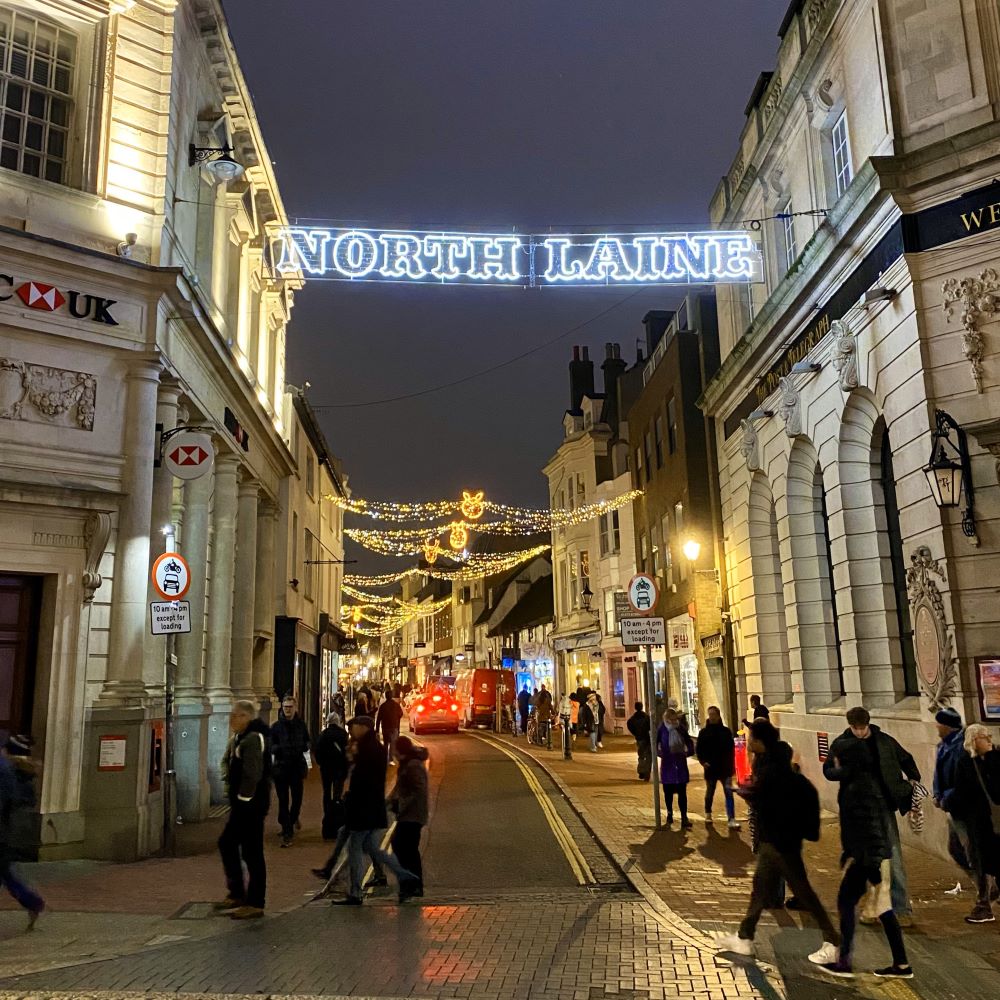 Auf dem Weg dorthin passierte ich nebenbei den bereits erwähnten Royal Pavillon (Bild siehe weiter oben), aber für eine kostenpflichtige Besichtigung war heute leider ebenfalls keine Zeit. Obendrein schränkte das derzeit vor dem dortigen Haupteingang aufgebaute Winter Wonderland mit Eisbahn, Buden und Fahrgeschäften die Fotogenität des Bauwerks massiv ein.