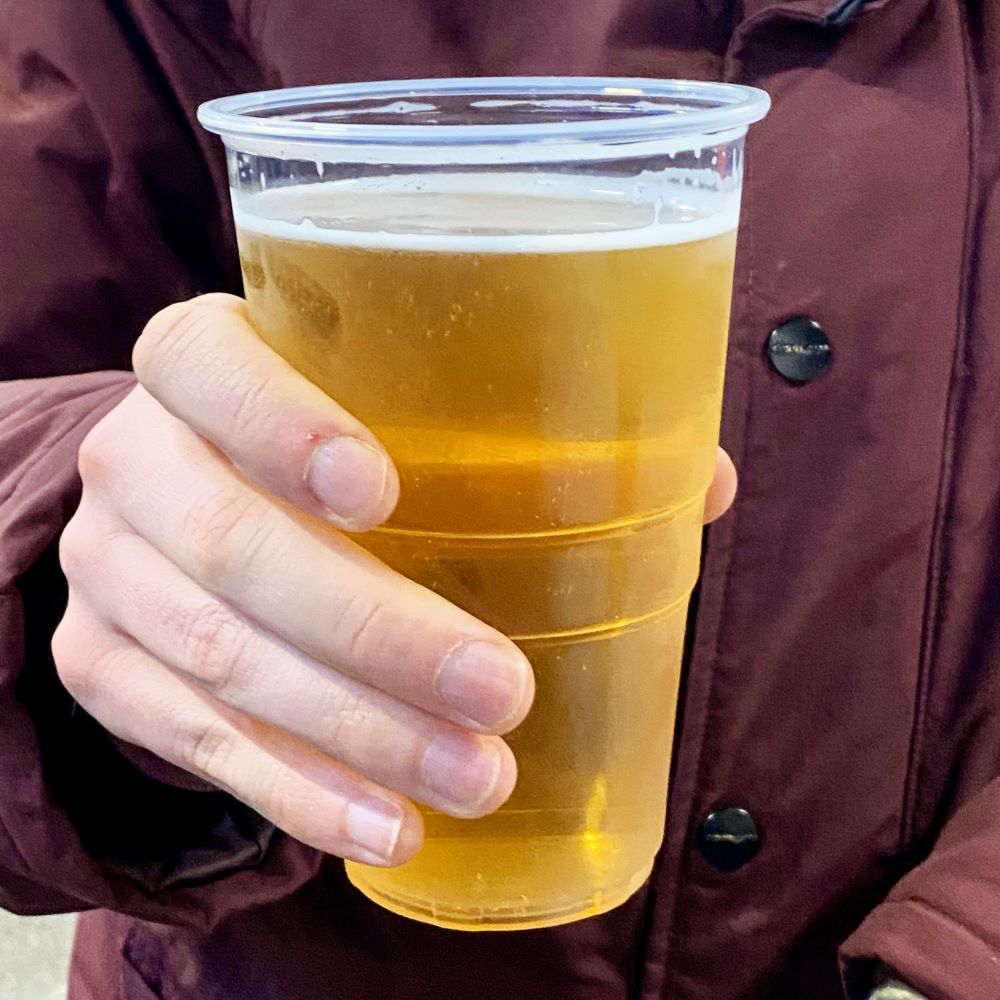 Leider war das Personal natürlich noch genauso unfähig wie vor dem Spiel. Die waren zu dritt, hatten nichts vorgezapft und agierten überdies kein Stück arbeitsteilig. Anstatt eine Person permanent zum Zapfen abzukommandieren, nahmen alle drei Bestellungen an und arbeiteten die allein ab. Während einer nun seine Bestellung zapfte, warteten die anderen beiden derweil untätig darauf selbst an den Hahn zu dürfen. Wurden außer Bier oder Cider außerdem noch Tee oder Snacks bestellt, dauerte es schon mal bis zu zwei Minuten, ehe ein Kunde versorgt war. So standen wir einfach 17 Minuten an, obwohl vor uns nur 13 Nasen in der Schlange waren. Unfassbar.