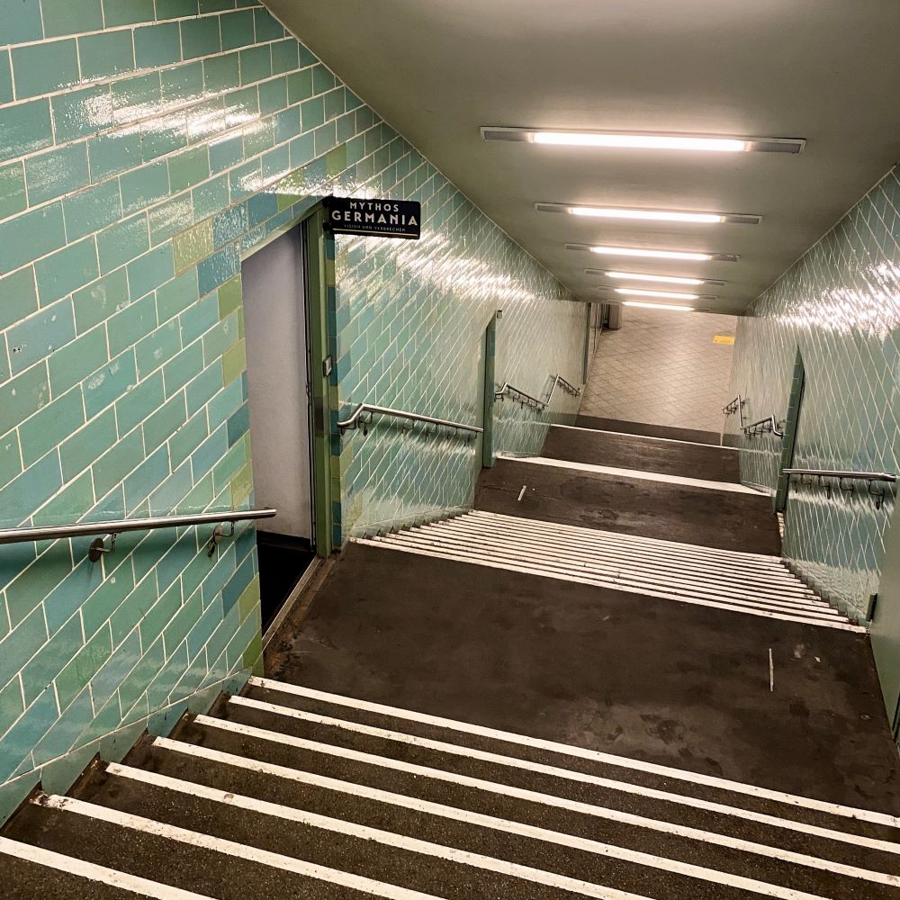 Zu jener Stunde sperrte die ausschließlich samstags geöffnete Ausstellung Mythos Germania – Vision und Verbrechen (6 € für Vollzahler) in einer unterirdischen Zwischenebene des U-Bahnhofs Gesundbrunnen ihre Türe auf. Diese vom Verein Berliner Unterwelten betreute Ausstellung entstand durch die Zusammenarbeit von mehreren Hochschulen und Museen und beleuchtet facettenreich die nationalsozialistischen Pläne für die Umgestaltung ihrer Reichsstadthauptstadt Berlin.