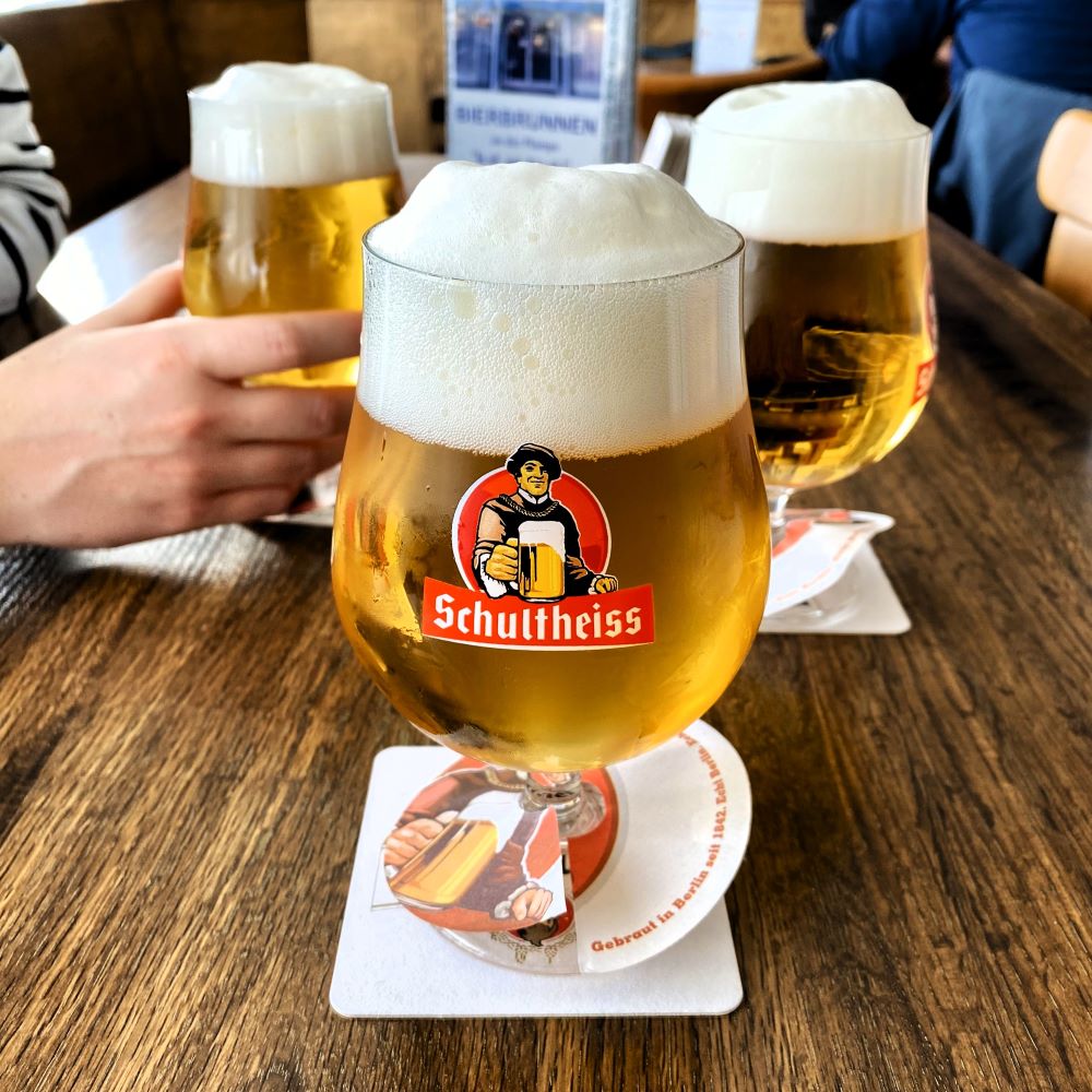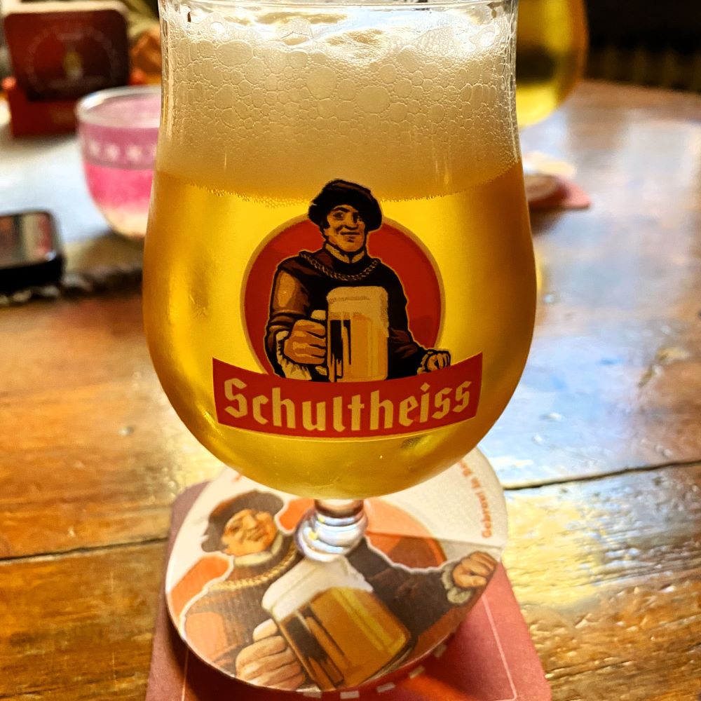 In dieser Konstellation, bei der außer Max jeder mindestens einen Menschen kennenlernte, musste natürlich noch ’ne zweite und ’ne dritte Runde her. Doch gegen gegen 16:30 Uhr zogen wir schließlich weiter zum Kachel-Eck im Soldiner Kiez, wo wir allesamt eine neue Bierbekanntschaft machten. Denn der dortige Wirt schenkt unterfränkisches Pils aus dem Hause Scherdel aus. Konnte man durchaus auch zwei von trinken.