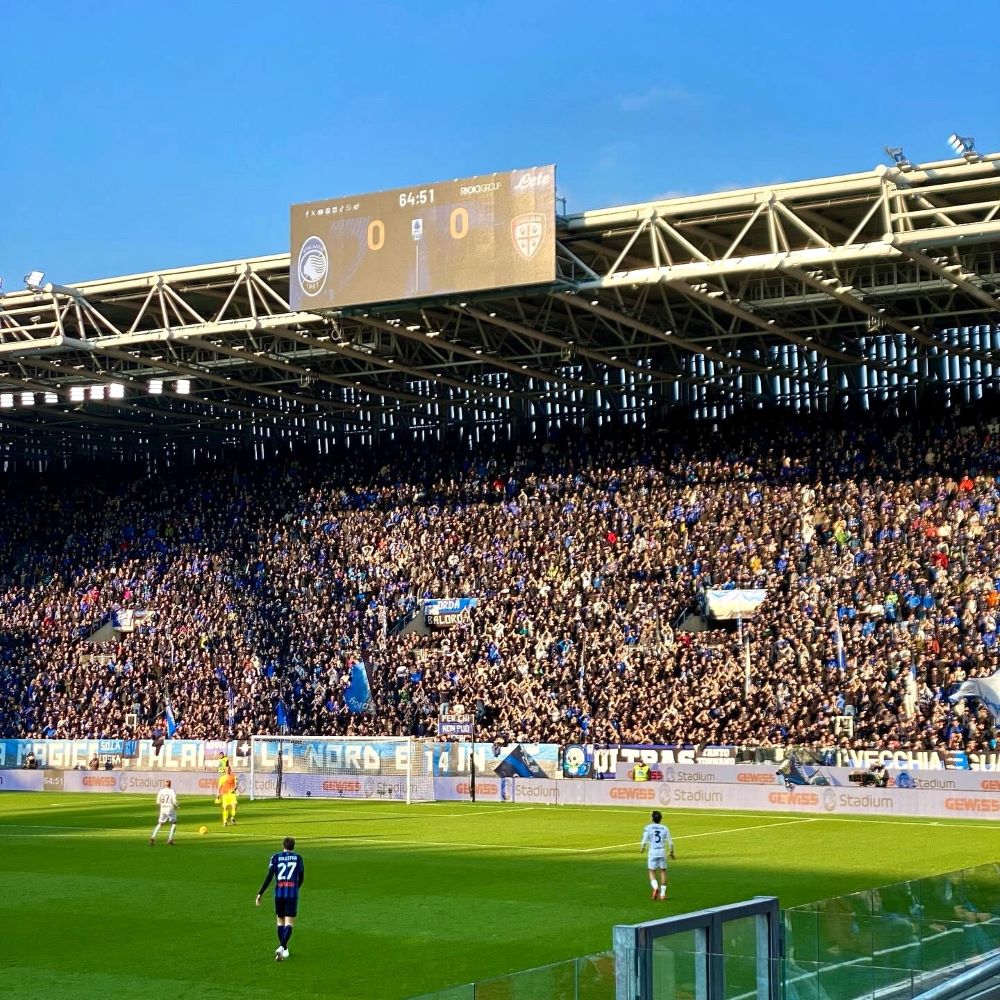 Der ebenfalls auf der Süd befindliche Gästesektor war auch passabel gefüllt. Jedoch fehlte es ohne Ultras an Koordination, Konstanz und Lautstärke beim Support des italienischen Meisters von 1970. Der wiederum machte Atalanta Bergamasca Calcio auf dem Rasen das Leben ziemlich schwer. Die Rossoblù standen als Außenseiter erwartungsgemäß sehr tief und den favorisierten Nerazzurri fehlten die zündenden Ideen zum knacken der sardischen Abwehrphalanx. So musste das Publikum tatsächlich auch 35 Minuten auf den ersten Torschuss der Partie warten. Der vorerst einzige Abwehrfehler der Gäste ermöglichte Atalanta eine Balleroberung in Strafraumnähe und Samardžić zwang Cagliaris Schlussmann Caprile zu einer Glanzparade.
