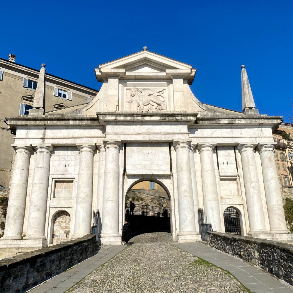 Vom Bahnhof in der Città Bassa (Unterstadt) machte ich gerne die zwei Kilometer und 120 Höhenmeter in die Città Alta (Oberstadt). Dabei konnte ich nach erster kleiner Anstrengung einen herrlichen Ausblick von der alten venezianischen Stadtmauer der Oberstadt genießen. Jene Mauer wurde ab 1561 errichtet, um das bereits 1428 an die Repubblica di Venezia (Republik Venedig) gefallene Bergamo vor der Bedrohung durch spanische und französische Invasionsheere zu schützen.