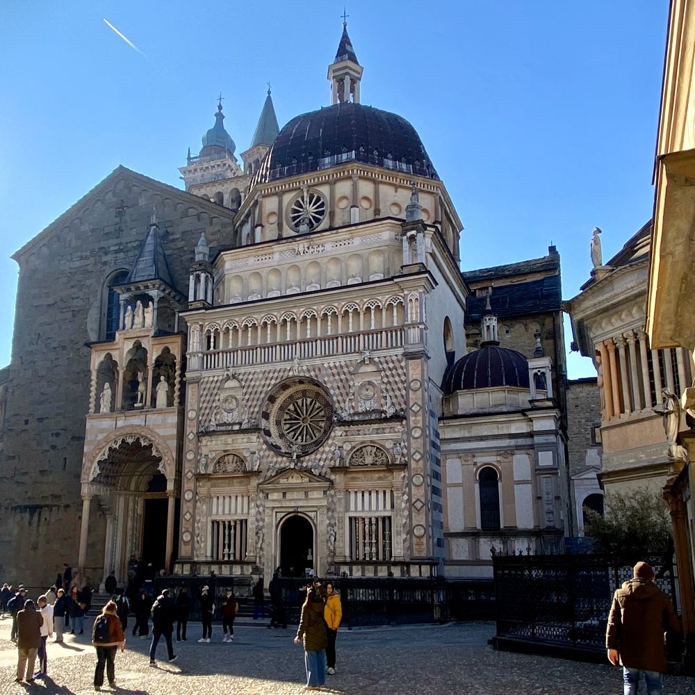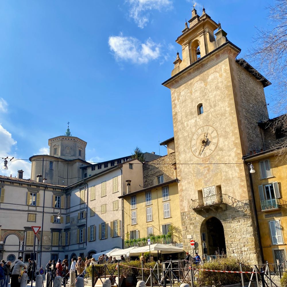 Auf der Piazza Vecchia im Herzen der Oberstadt vertiefte ich nun ein wenig die weitere Geschichte Bergamos. Dort erinnern u. a. der Palazzo della Ragione, der Torre Civica (beide aus dem 12. Jahrhundert), die Basilica di Santa Maria Maggiore (ursprünglich ebenfalls 12. Jahrhundert, später barockisiert) und die Cattedrale di Sant’Alessandro Martire (15. Jahrhundert) an die mittelalterliche Blütezeit der Stadt.