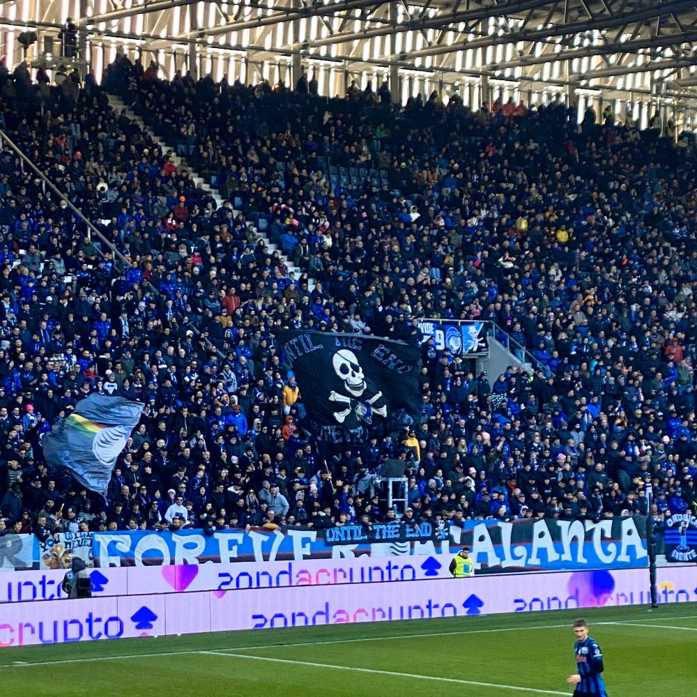 Auf der Süd, wo nach wie vor die 2006 gegründete Gruppe Forever Atalanta am sichtbarsten ist, lief der Tifo dagegen quantitativ in kleineren Dimensionen ab. Aber insgesamt kann man weiterhin von zwei aktiven Kurven bei Atalanta sprechen. Wobei die Nord auch ohne neue Dachgruppe sicher noch den Ansatz der großen und verschiedene politische Strömungen vereinenden Fankurve verfolgen dürfte, während im Süden das linke Erbe der 1976 gegründeten und 2005 aufgelösten Brigate Neroazzurre gewissermaßen bis heute gepflegt wird.