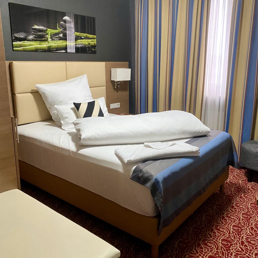 Am Spieltag ging es 12:55 Uhr in Hannover los und erfreulicherweise bekam ich im ICE 1683 spontan Gesellschaft von Alex. Der war heute beruflich bei Eintracht vs. Ajax und gemeinsam vergingen gute 2,5 Stunden Bahnfahrt wie im Fluge. In der Mainmetropole trennten sich unsere Wege jedoch umgehend. Alex fuhr sofort weiter zum Waldstadion, während es mich mitsamt lästigem Reisegepäck zunächst ins bahnhofsnahe Mercure Hotel Kaiserhof (****) zog. Nach Einlösung von 2.000 Bonuspunkten ließ die Accor Group mich dort heute für einen fairen Restbetrag in Höhe von 24,60 € nächtigen.