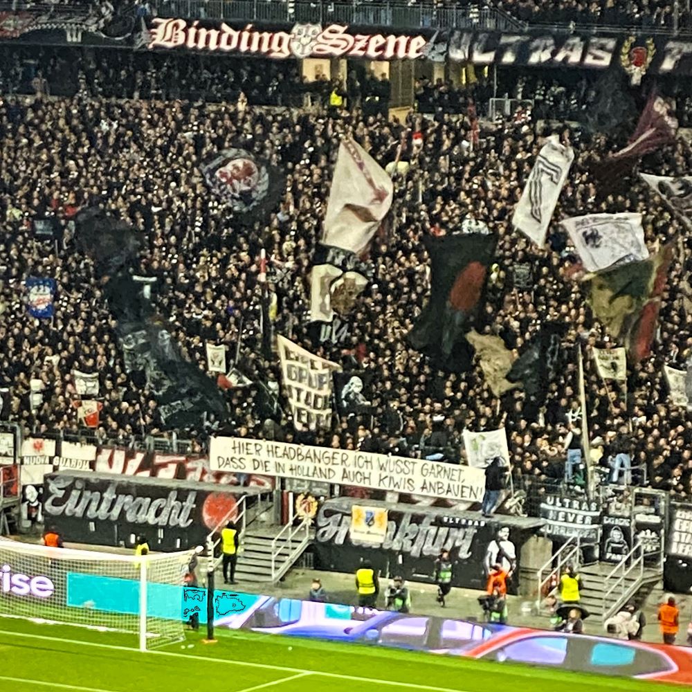 Der mittlerweile von der Kurve zum Besten gegebene Kuttenklassiker „Wen woll’n wir fressen…“, der in Frankfurt mit der Formel „Ajax ist zum Putzen da“ endet, passte heute also gar im doppelten Wortsinn. Schließlich wurden die kickenden Namensvetter des Haushaltsreinigers buchstäblich von der Eintracht weggeputzt. Schon bitter für den trotzig weiter supportenden Gästeanhang, dass der Trainer den Kosten und Mühen der mitgereisten Fans so respektlos begegnet ist. Zumal der AFC Ajax, trotz wirklich beeindruckender Historie, heutzutage nicht in der Position ist, um die UEFA Europa League als zweitklassigen Wettbewerb abzutun.