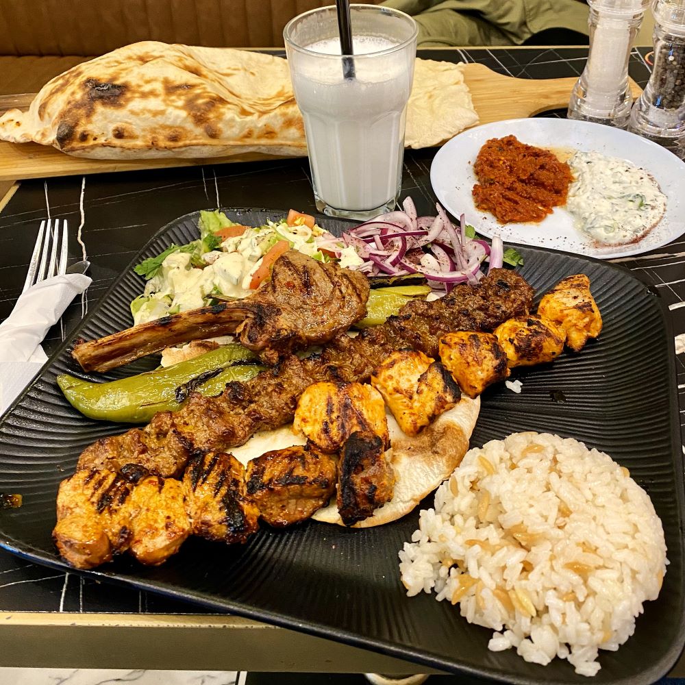 Fast schon zu wohl. Aber weil ich mir heute auf keinen Fall den Hunger wegsaufen wollte und am nächsten Morgen bereits um 6 Uhr aufstehen musste, zog ich gegen 22:30 Uhr die Reißleine. Die köstliche Belohnung für diese Vernunftentscheidung waren ein gemischter Grillteller (22 €) und ein gezapfter Ayran (3 €) in der nahen Ocakbasi Mangal, ehe es wenigstens noch vor Mitternacht ins Bett und schließlich wenige Stunden später weiter nach Italien ging.