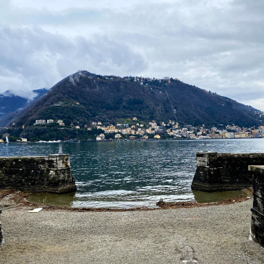 Nichtsdestotrotz lohnte der Spaziergang an der Uferpromenade. Denn da der Ort schon seit Jahrhunderten ein wohlhabendes Klientel anzieht, ist sie von etlichen weiteren alten Villen gesäumt. Die schönen Ausblicke auf den See und die umliegende Bergwelt geben eine Antwort auf die Frage nach dem Warum. Die wussten selbst an einem trüben Tag wie heute zu erfreuen, so dass ich gerne noch weiter gen nächste Ortschaft Cernobbio spazierte. Da der See allerdings deutlich zu groß für eine nachmittägliche Umrundung ist (wir reden hier von ca. 170 km Seeufer), beschloss ich nach einer guten Stunde wieder die Richtung zu wechseln.
