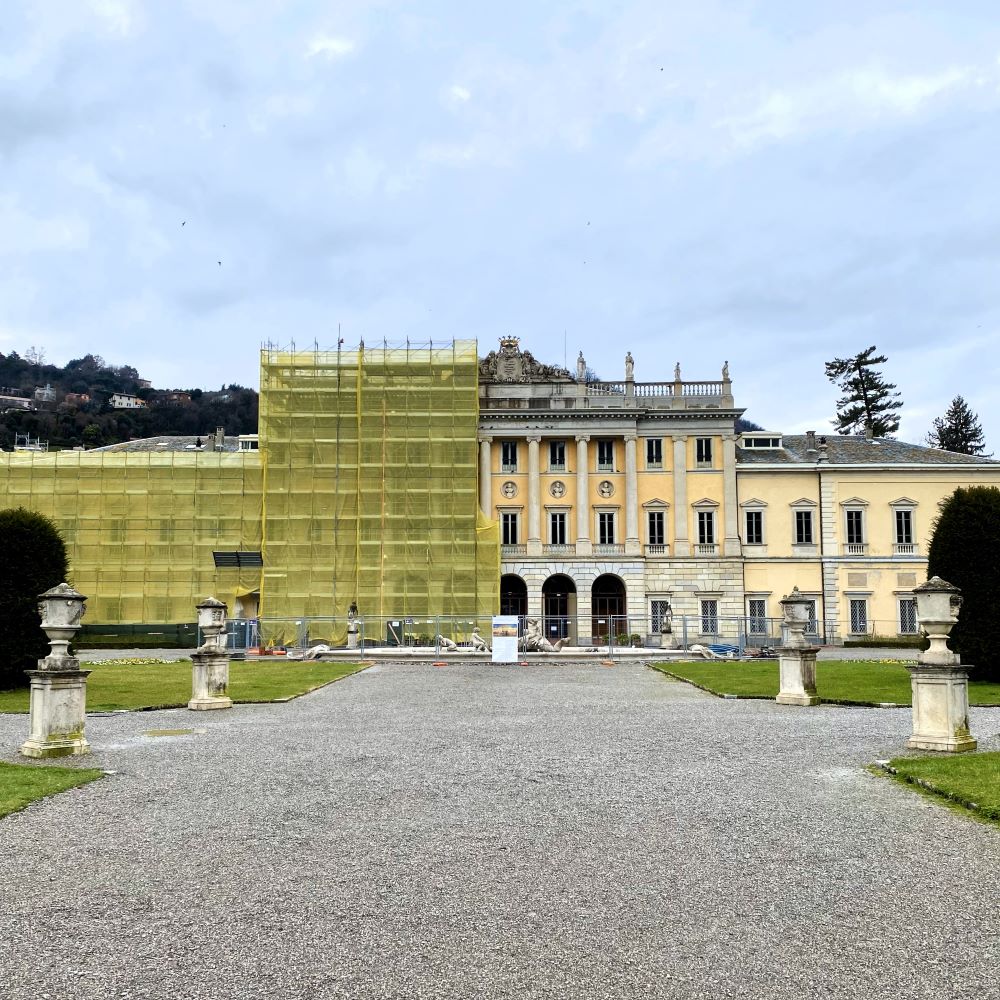 Zum Glück war mir bereits ein Spielbesuch in jenem malerisch gelegenen Stadion vergönnt (siehe Como 10/2023) und im Zuge dessen hatte ich mir auch die Altstadt von Como angeschaut. Zeitlich nicht drin war damals aber ein Besuch der Villa Olmo. Den wollte ich heute nachholen, stand jedoch leider vor verschlossenen Türen. Gegenwärtig werden nämlich großflächige Restaurationsarbeiten an und in der herrschaftlichen Villa aus dem späten 18. Jahrhundert ausgeführt, so dass die Touristen nur in den Genuss der Parkanlage des Anwesens kommen.