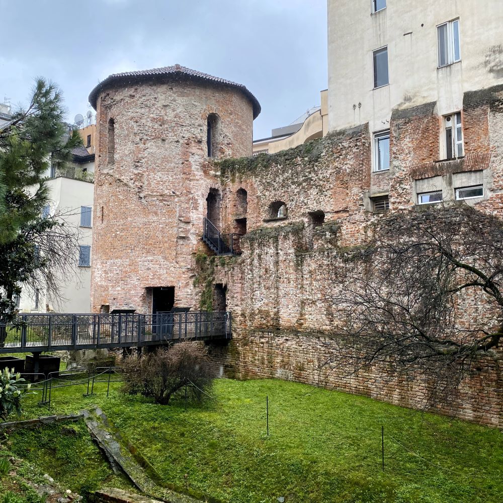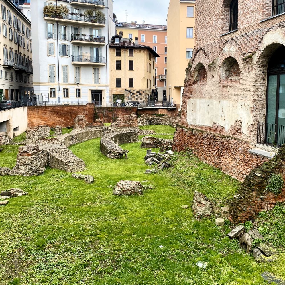 Am Ende wurden für die Gerichte, eine Flasche Wasser, Espresso und Coperto 47 € fällig und nachdem die bezahlt waren, schaute ich gleich gegenüber nochmal bei den Überresten des Palazzo Imperiale di Massimiano (3. Jahrhundert) vorbei. Viel zu sehen gibt es von dem einstigen römischen Kaiserpalast zwar nicht mehr, aber es war nochmal eine gute Ergänzung zum Museumsbesuch.