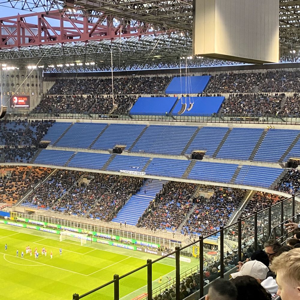 Es war mein bereits dritter Besuch dieses Fußballtempels in der laufenden Saison und wie bereits gegen Hellas Verona vor vier Wochen (Vgl. Milano 02/2025), hatte ich mir für 12 € erneut einen Sitzplatz im dritten Rang gebucht. Weit weg vom Spielfeld, aber schön nah am heute ausverkauften Gästesektor. Dort hatten sich laut Ticketing 4.109 Comaschi eingefunden, die den Aufsteiger sehr laut unterstützen sollten.