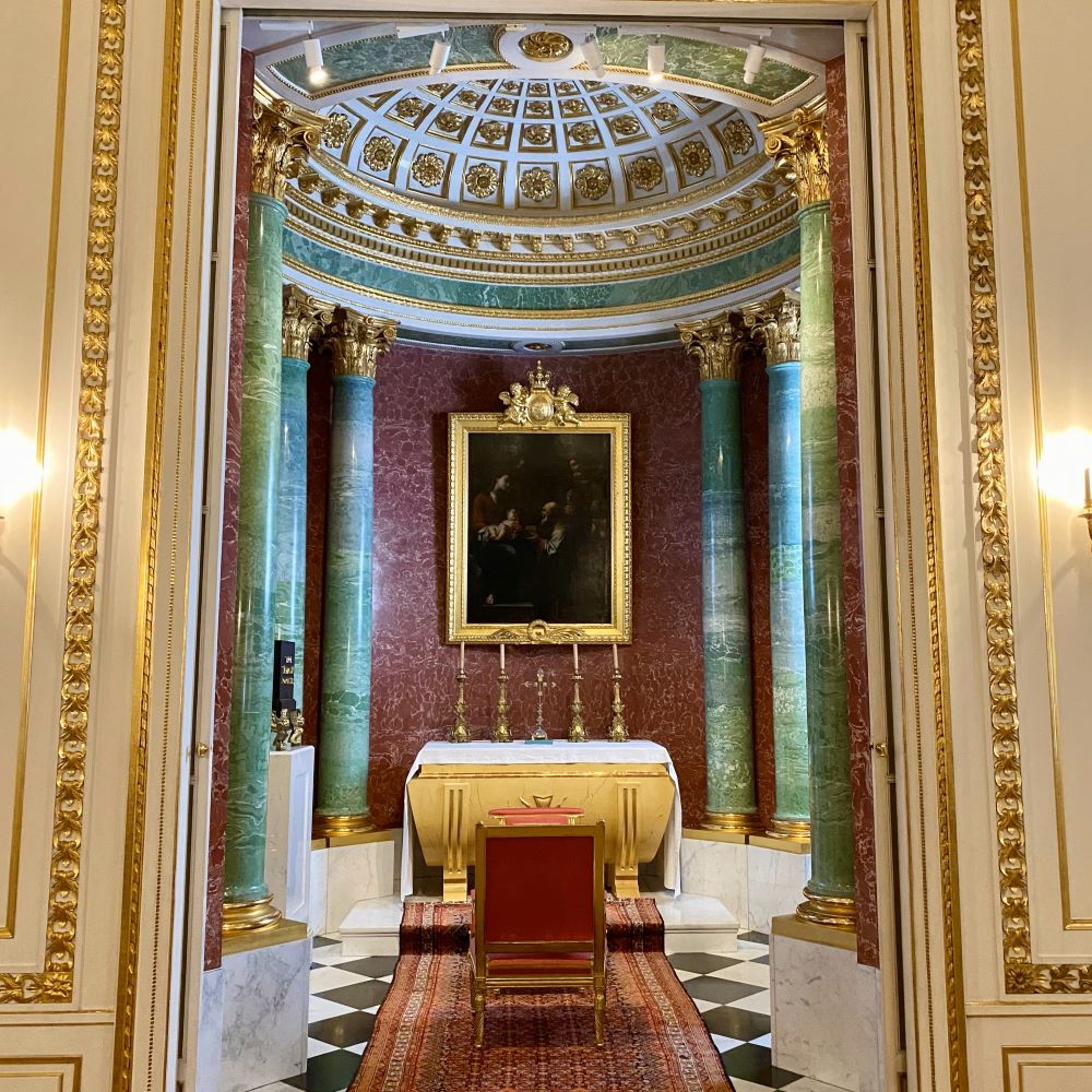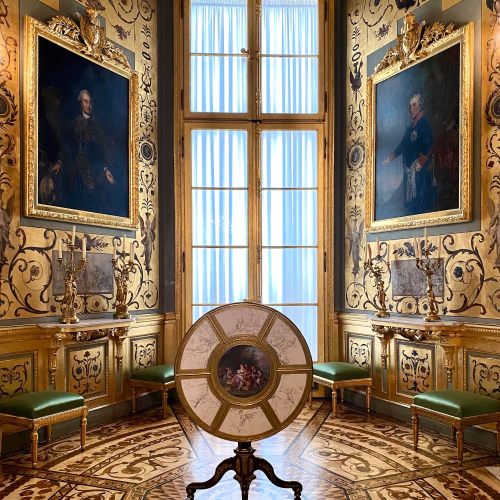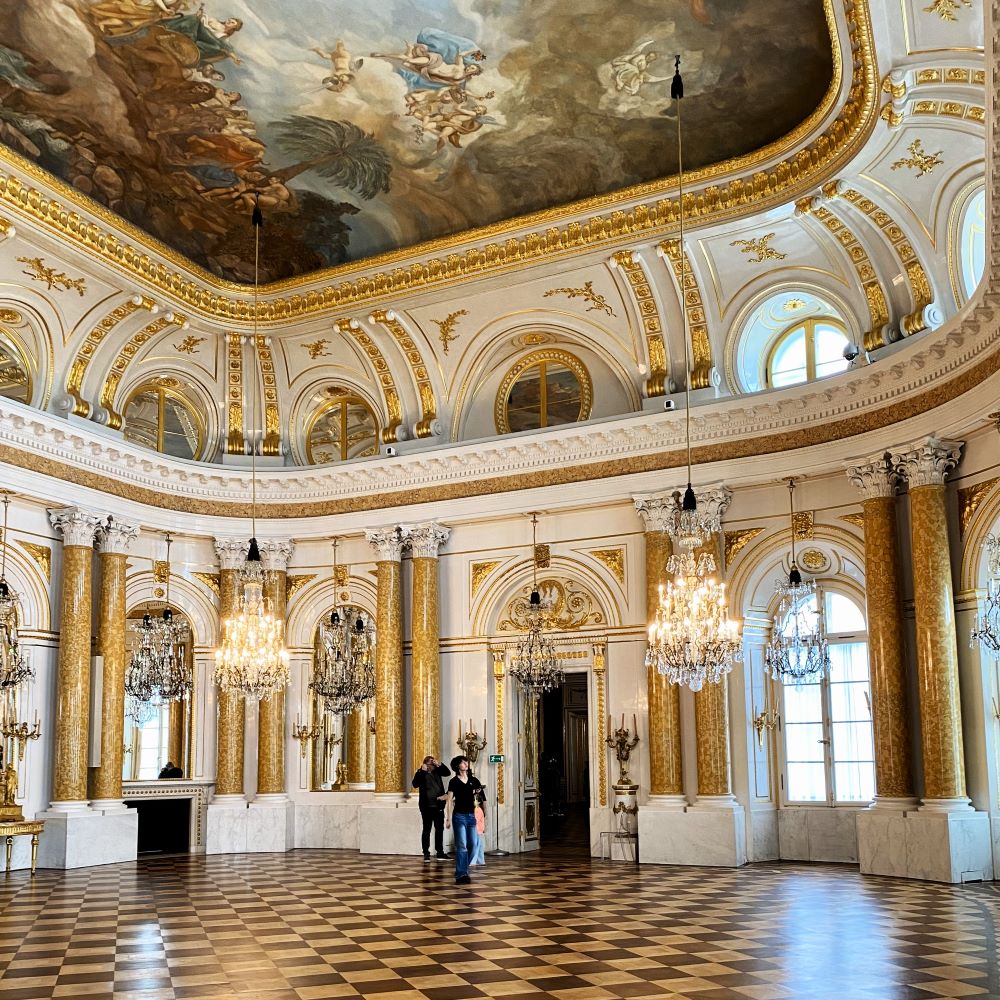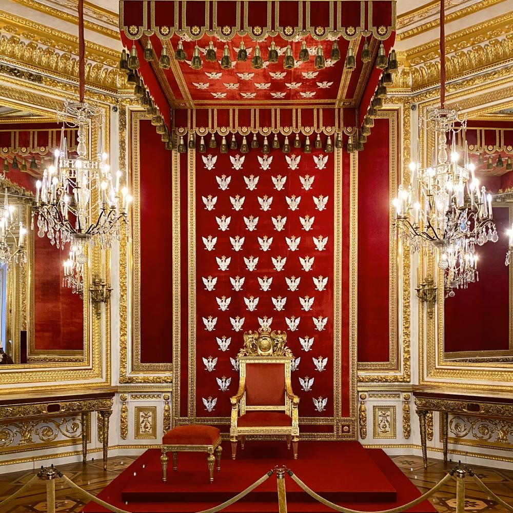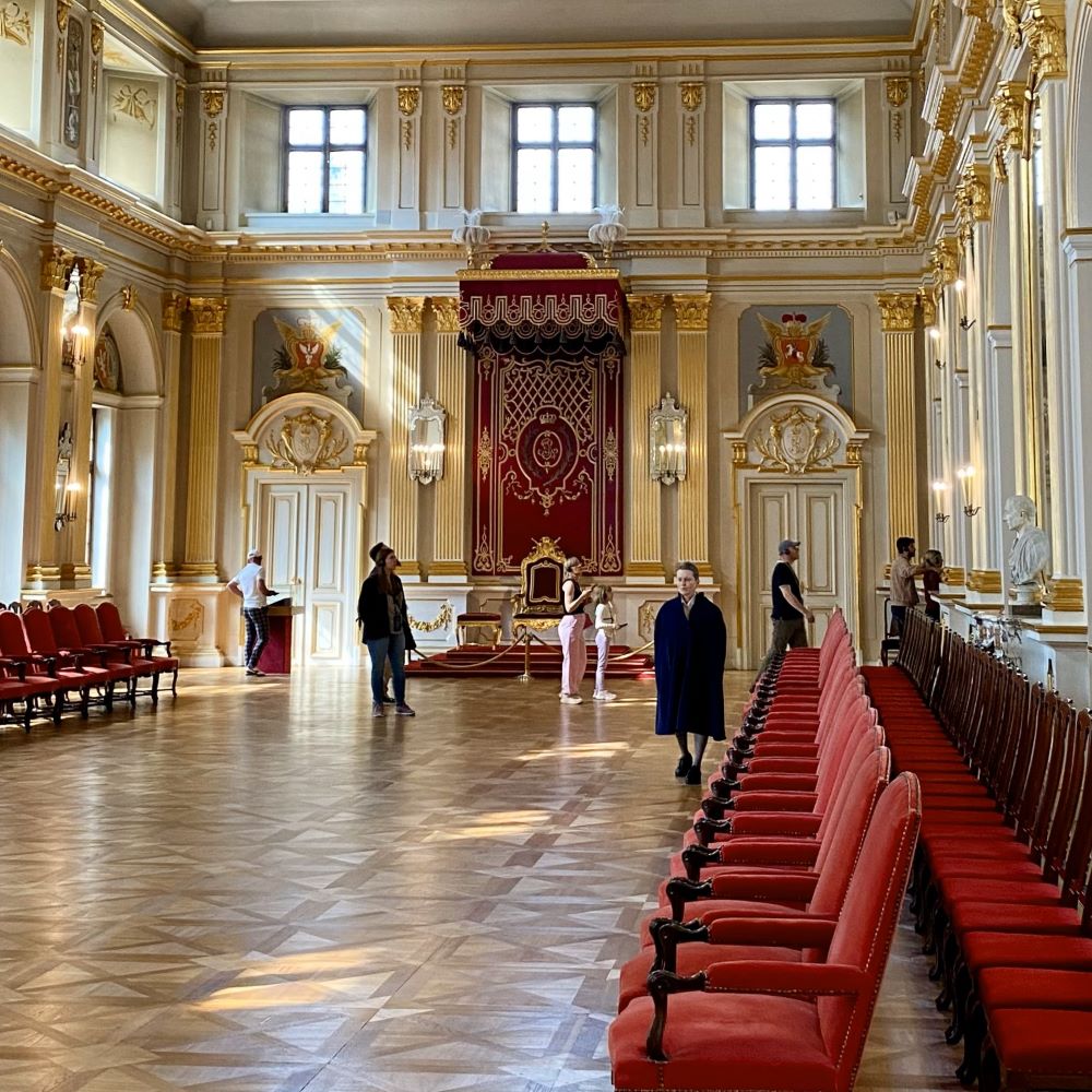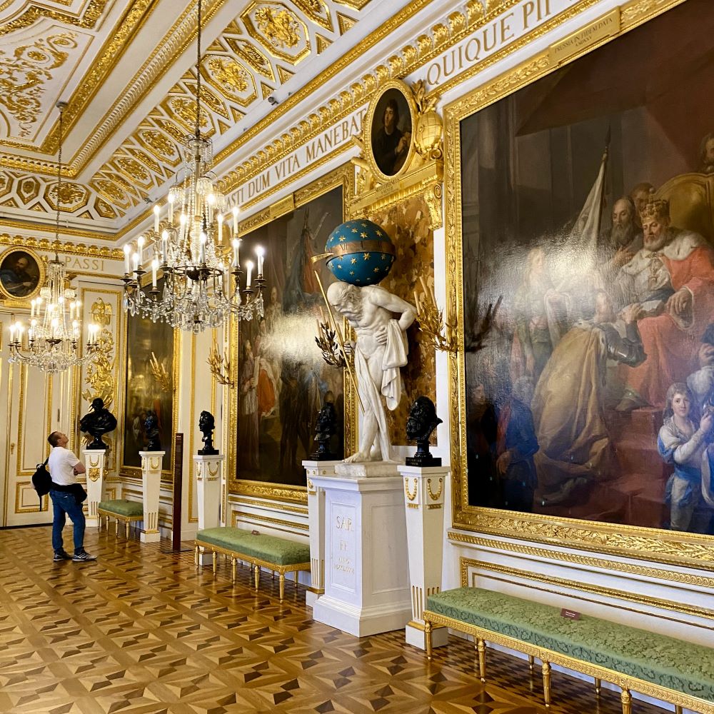 Anschließend ging es pünktlich zum nahen Schloss (siehe auch Titelbild), wo ich nach der Ticketkontrolle mit einem Audioguide in deutscher Sprache ausgestattet wurde und dann auf eigene Faust durch die repräsentativsten Räume dieser einstigen königlichen Residenz spazieren konnte. Dabei erhielten meine Ohren nun natürlich viele Informationen über die Architektur und die Geschichte dieses Bauwerks.
