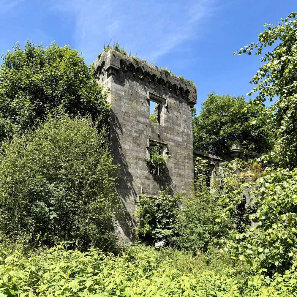 Nach etwa sieben Kilometern bot sich eine Gelegenheit vom West Highland Way in den Country Park abzubiegen. Die nahm ich wahr und als erste interessante Landmarke erwarteten mich dort nach ungefähr drei weiteren Kilometern die Überreste von Craigend Castle. Ein einstiger Landsitz der Barone von Mugdock, der aber Mitte des 20. Jahrhunderts zur Ruine verfiel. Davor diente er übrigens zuletzt als Hauptgebäude eines kommerziell erfolglosen Zoos auf dem Gelände des Parks.