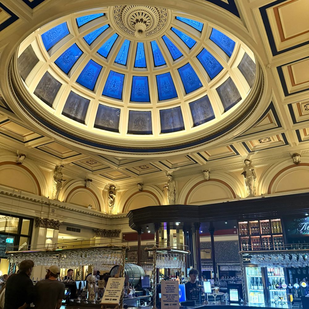 Dort kam ich um exakt 18 Uhr an und war der Meinung, dass ich mir nach den sportlichen Spitzenleistungen des heutigen Tages ein absolut ungesundes Drei-Gänge-Menü in der Gourmetküche von J. D. Wetherspoon verdient hatte. Dazu ging es in Bahnhofsnähe in den Pub The Counting House, wo es am heutigen Montag das Angebot „Three small plates for £ 12“ gab.