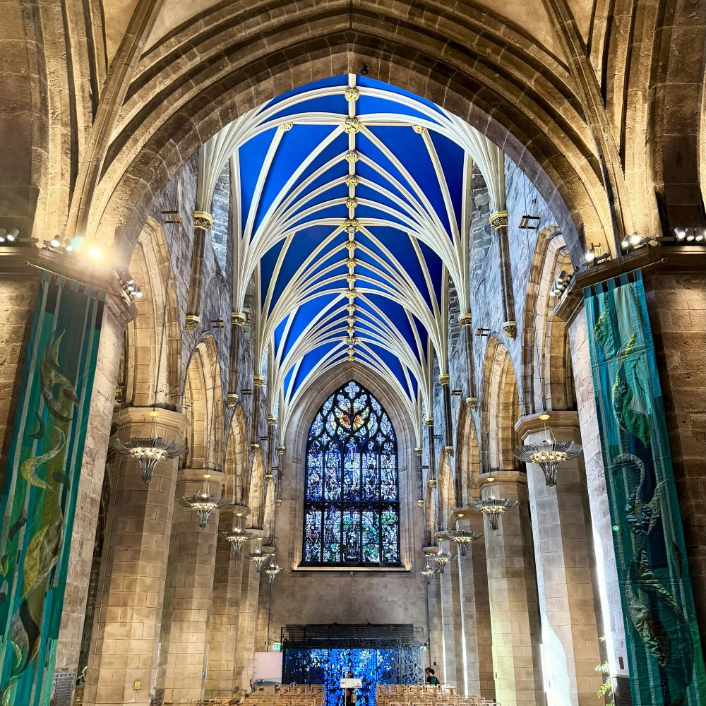 Am Standort der St Giles Cathedral ist übrigens bereits seit 854 eine Kirche urkundlich verbrieft, während die bis heute erhaltene gotische Baugestalt nach einem großen Brand im 1385 geschaffen wurde. Der Wiederaufbau wurde schließlich im Jahre 1495 abgeschlossen, als der Turm mit seiner markanten Spitze gekrönt wurde. Wenig später wurde St Giles zu einem Schlüsselort der Reformation. Denn hier predigte ab 1559 der große schottische Reformator John Knox, von dem nebenbei ein großes Denkmal den Vorplatz der Kathedrale ziert.