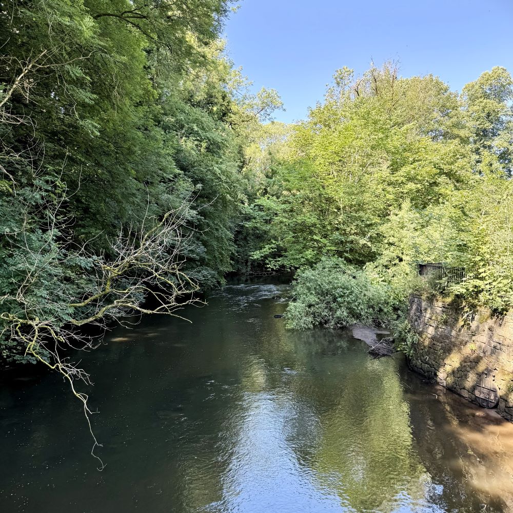 Wobei ich das £ 5.60 (ca. 6,50 €) teure Returnticket auf der Hinfahrt nur bis Uddingston nutzte. Denn wenn ich mir schon den Clyde FC anschaue, kann ich zuvor ruhig noch ca. 9,6 km am gleichnamigen Fluss entlang wandern. Zumal mich auf der erfreulicherweise sehr schattigen Route auch zwei touristische Attraktionen erwarten sollten.