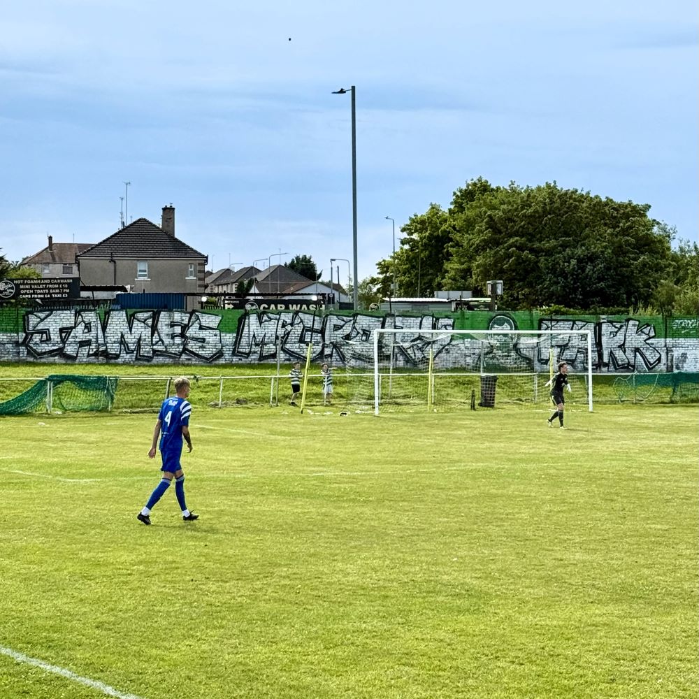 Das taten die Teams vor rund 200 jeweils £ 5 (ca. 5,80 €) ärmeren Zuschauern in einer richtigen Ranzbude. Der James McGrory Park sah irgendwie aus, als hätten Schrottsammler ihn nach und nach aus Sperrmüll zusammengeschustert. Das hatte nicht wie in Maryhill den Charme einer altehrwürdigen, aber in die Jahre gekommenen Sportstätte, sondern war in meinen Augen einfach nur ein verhinderter Wertstoffhof mit einem Spielfeld in der Mitte.