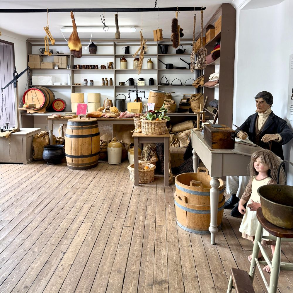 Das Museum stand heute auch auf meiner Liste. Aber als der Regen ab 15 Uhr so richtig peitschte, stand ich gerade vor einer sehr einladend wirkenden Teestube namens Effie’s of Perth. In einem fast schon zu kitschigen Ambiente mit unzähligen uralten Fotos und lauter Ephemera an den Wänden, ließ ich mir für £ 16.95 (ca. 19,60 €) Schinkensandwiches, einen Scone mit Clotted Cream, ein Stück Karottenkuchen und eine Kanne Darjeeling servieren. Alles auf schönstem Porzellan und alles sehr wohlschmeckend.