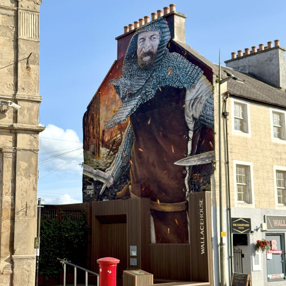 Am Ende von Jookers Johnnie erwartete mich wieder der historische Stadtkern, dessen Durchstreifen ebenfalls lohnenswert war. Immerhin erhielt Lanark bereits im 12. Jahrhundert von der schottischen Krone den Status einer Royal Burgh verliehen. Dieser bedeutete besonderen königlichen Schutz und Handelsprivilegien. Die mittelalterliche Stadtanlage ist durch viele von der High Street abzweigenden Closes (Gassen) noch gut nachvollziehbar und ferner wird an mehreren Stellen an ein besonderes Ereignis im Jahre 1297 erinnert. Denn in den just begonnenen schottischen Unabhängigkeitskriegen (1296 – 1357) tötete ein gewisser William Wallace bei einem Aufstand den englischen Sheriff von Lanark. Anschließend folgte eine militärische Karriere, die einem größeren neuzeitlichen Publikum durch den der Dramaturgie zuliebe nur bedingt historisch authentischen Spielfilm Braveheart (1995) bekannt wurde.