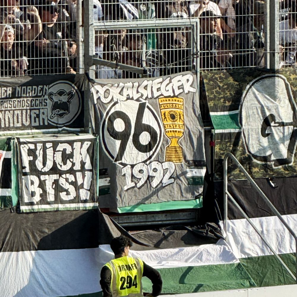 An der dieser Stelle sei noch erwähnt, dass FCE-Anhänger in der Nacht von Freitag auf Samstag sogar ein Graffiti in der Nähe des Niedersachsenstadion gesprüht hatten. Die Botschaft an hannoversche Bürger auf ihrer morgendlichen Laufrunde lautete: „Als Kind zu oft in den Dreck geflogen, heute aus dem Pokal! Scheiss 96!“ Komplettiert mit Schriftzug und Logo des FC Energie. Die 1997 im Zuge der skandalös verlaufenen Aufstiegsspiele zwischen Hannover 96 und Energie Cottbus entstandenen Animositäten scheinen also weiterhin beidseitig zu bestehen.