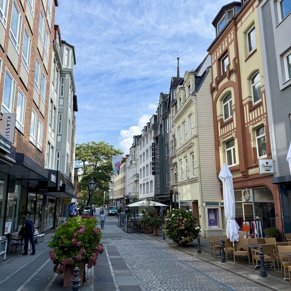 Aber ohne das ganz große Völlegefühl hatten wir immerhin noch Motivation für einen kleinen Streifzug durch die Innenstadt. Dabei fiel schnell auf, dass Kiel für eine Stadtgründung aus dem 13. Jahrhundert sehr wenig wirklich alte Bausubtanz hat und selbst die historische Altstadt zuvorderst Nachkriegsbebauung aufweist. Das liegt einerseits daran, dass man bereits um das Jahr 1900 einiges an historischen Häuserzeilen für neue Wohnquartiere geopfert hat. Andererseits bekam diese wichtige Hafenstadt mitsamt Marinestützpunkten und Werften natürlich auch viele Weltkriegsbomben ab und beim Wiederaufbau hat man nach 1945 nur ganz wenige historische Bauwerke wie die gotische Nikolaikirche (13. Jahrhundert) rekonstruiert.