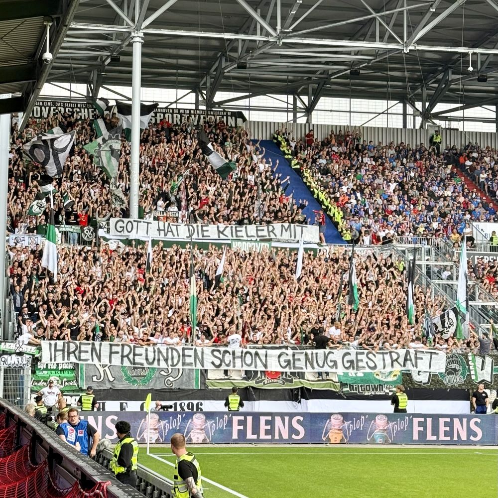 Dissens herrscht an Förde und Leine hingegen über die Bewertung der Szene eines weiteren norddeutschen Zweitligisten. So gönnten die Schlachtenbummler aus Hannover den Kielern die günstigeren Bierpreise auch, weil die ein Teil der Kurve eine Freundschaft pflegt, die jeder Storch mit etwas Stil sicher nur besoffen ertragen kann. Konkret bezog sich das entsprechende Spruchband „Gott hat die Kieler mit ihren Freunden schon genug gestraft“ auf die Kontakte der kontaktsportaffinen Kieler Gruppierung Jungblut mit Gleichgesinnten aus Braunschweig. Diese Allianz stößt in Hannover natürlich auf keinerlei Akzeptanz und beim letzten Gastspiel von 96 bei Holstein (16.12.2023) war es bekanntlich zu handfesten Auseinandersetzungen der entsprechenden Klientel am Kieler Exerzierplatz gekommen.