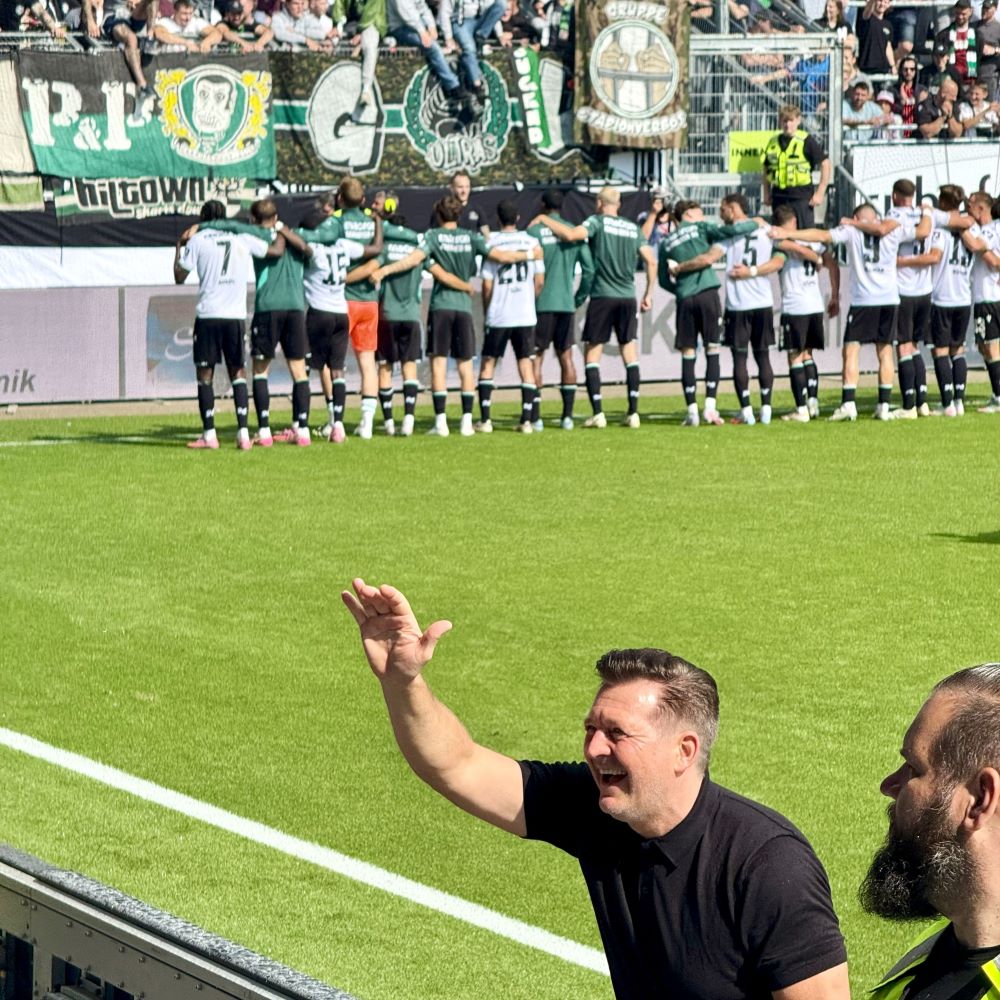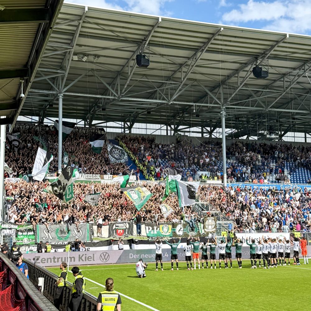 Während Familienvater Jojo direkt mit dem Schlusspfiff aus dem Stadion stürmte und bereits 15:23 Uhr in einem Regionalexpress in Richtung Frau und Kind saß, konnte ich Titz meine Lobeshymne nach Spielende sogar noch in Kurzform persönlich vortragen. Anschließend traf ich mich fix auf ein Bier mit unserem holsteinschen Ticketkäufer, der ebenfalls würdigende Worte für die Leistung der Gastmannschaft übrig hatte. Dazu folgten in der Presseberichterstattung zum Spiel noch etliche Elogen… es ist fast schon unheimlich.