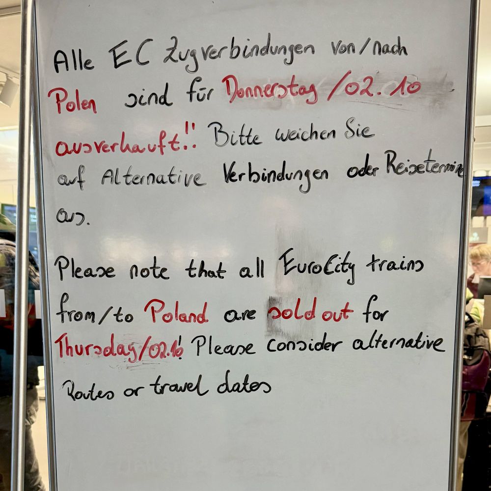 Weil in Basel die Tickets über 100 € kosten sollten und eine Übernachtung ebenfalls deutlich dreistellig gekostet hätte, war ich am Ende allerdings geiziger als ein Schwabe. Nun ging es doch lieber nach Poznań (Posen), wo Eintrittskarte (33 €) und Unterkunft (45 €) meine Kreditkarte wesentlich geringer belasten sollten. Auch die Zugfahrt nach Polen war mit 55,69 € in der 1. Klasse ziemlich erschwinglich und startete am 2. Oktober um 8:37 Uhr. Zwei Stunden später war ich in Berlin, wo ich in der DB Lounge mein mitgeführtes Frühstück zusammen mit ein paar Freigetränken verzehrte.