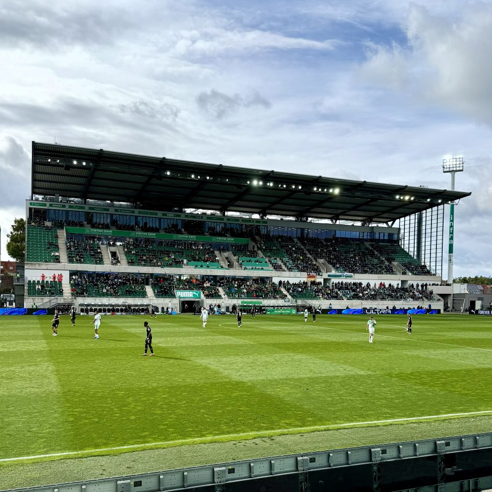 Doch für einen Streifzug über die Kärwa fehlte uns leider die Zeit. Schließlich sollte ab 13:30 Uhr im Sportpark Ronhof der Ball rollen. Jene 1910 eröffnete und gegenwärtig bis zu 16.626 Zuschauer fassende Sportstätte erreichten wir dann eine Viertelstunde vor Anpfiff und verabschiedeten uns erst einmal voneinander. Denn meine Freunde saßen im etatmäßigen Gästebereich, während ich das Fürther Angebot auf der Plattform Corporate Benefits nutzte und ein Ticket auf der Gegengerade zum Sonderpreis von 33 € erwerben konnte.