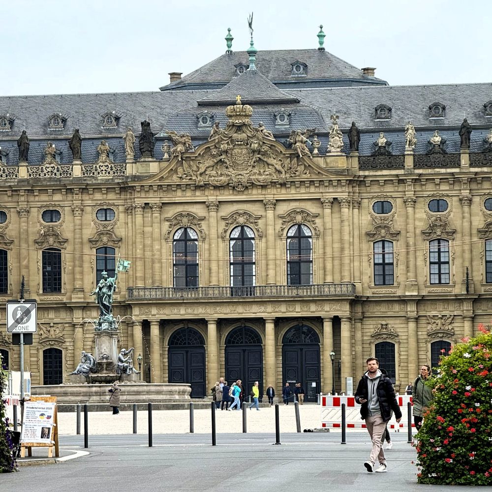 Erstes Ziel war die nahe Julius-Maximilians-Universität und wenig später standen wir vor der berühmten Würzburger Residenz. Mir war zwar klar, dass mir auf dieser Tour einen Revisit dieser prächtigen barocken Schlossanlage abschminken konnte. Allerdings hatte ich den Biergarten der Residenzgaststätten B. Neumann für die erste Mahlzeit des Tages auserkoren. Blöd nur, dass wir dort mit den Worten „Geschlossene Gesellschaft“ empfangen wurden.