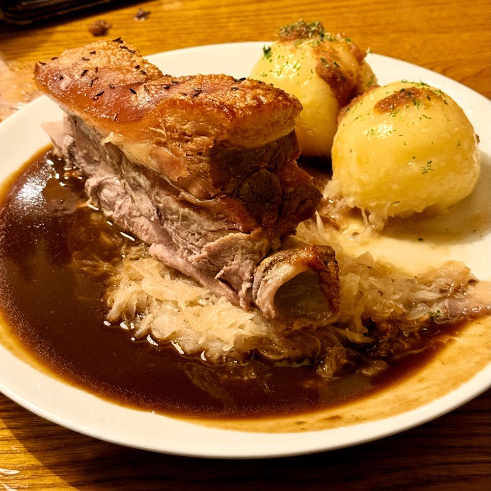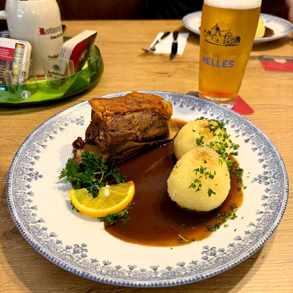 Im diesem traditionsreichen Wirtshaus (seit 1951) wurden wir mit offenen Armen empfangen und in Windeseile an einem freien Tisch platziert. Vier Schäuferla und vier Helle aus dem Hause Herbsthäuser (Bad Mergentheim) waren ebenfalls ruckzuck auf dem Tisch und beides mundete formidabel. Da tranken wir gerne auch noch eine zweite Runde Bier und kamen am Ende auf eine Rechnungssumme in Höhe von 136,70 €.