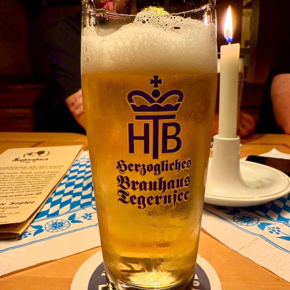 Allerdings brannte kurz vor Mitternacht tatsächlich noch Licht im SophienBäck. Das Betreiberpärchen bewirtete auch ohne unsere Betreuerin die letzten Gäste und wir fragten höflich, ob wir ebenfalls noch einen Absacker nehmen können oder gleich geschlossen wird. Ersteres war der Fall, so dass das allerletzte Bier dieses Trips Tegernsee Hell hieß und unser Gastwirt nochmal 20 € mehr in der Kasse hatte.