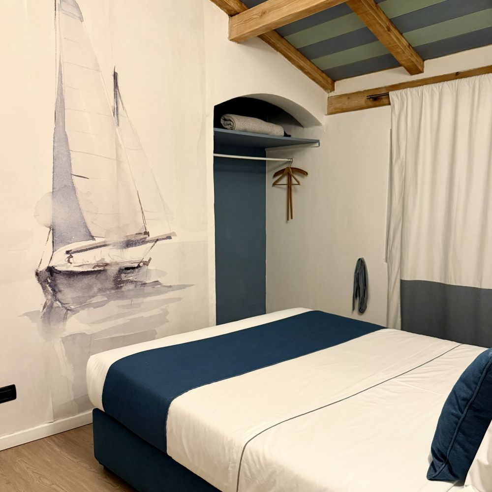 20:05 Uhr ging’s dann per InterCity weiter zu unserem Zielort. Den erreichten wir nach exakt 100 Minuten und nur wenige Wimpernschläge später konnten wir bereits den Türcode unseres Apartments eintippen. Denn ich hatte uns nur 300 m entfernt vom Bahnhof in der Via Balbi einquartiert. Dort hatten wir im Hinterhaus von einem stattlichen Altbau eine für fünf Nächte 600 € teure Bude mit u. a. drei Schlafkammern, zwei Badezimmern und einer netten Terrasse im Innenhof. Auf der tranken wir noch eine Runde Birra Moretti, ehe es gegen 23 Uhr ins Bett ging.