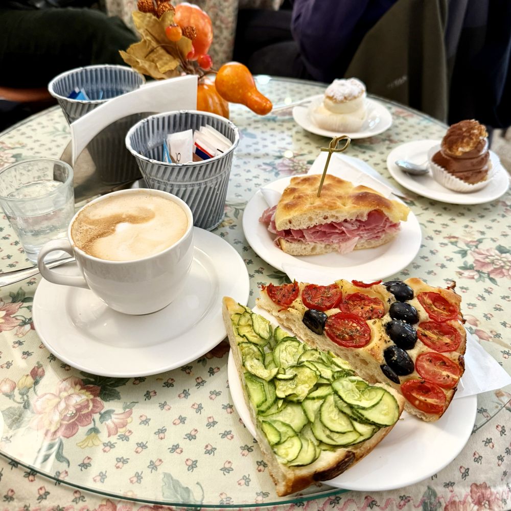Nach 125 Minuten Fahrzeit erreichten wir Torino, womit uns noch knapp zwei Stunden bis zum Anpfiff blieben. Da drängte sich um diese Tageszeit natürlich ein Frühstück auf. Entsprechend spazierten wir erstmal in die bahnhofsnahe Pasticceria Uva, wo ein Cappuccino 1,70 € kostete, Törtchen für 3,30 € zu bekommen waren und kleine Pizzastücke mit 2,50 € zu Buche schlugen. In jeden Fall fand jeder was Passendes in den Auslagen.